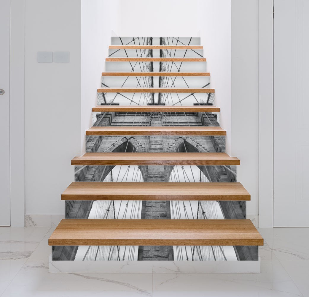 Brooklyn Bridge Landmarks Black White Stair Riser Decals, Waterproof Removable Staircase Decals, Vinyl Peel And Stick Stairs Decal Stickers