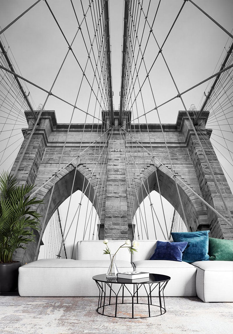 Brooklyn Bridge City Landmarks Black&White Wallpaper Mural,Self-Adhesive Peel And Stick 3D Wall Mural,Removable Bedroom Wall Decor