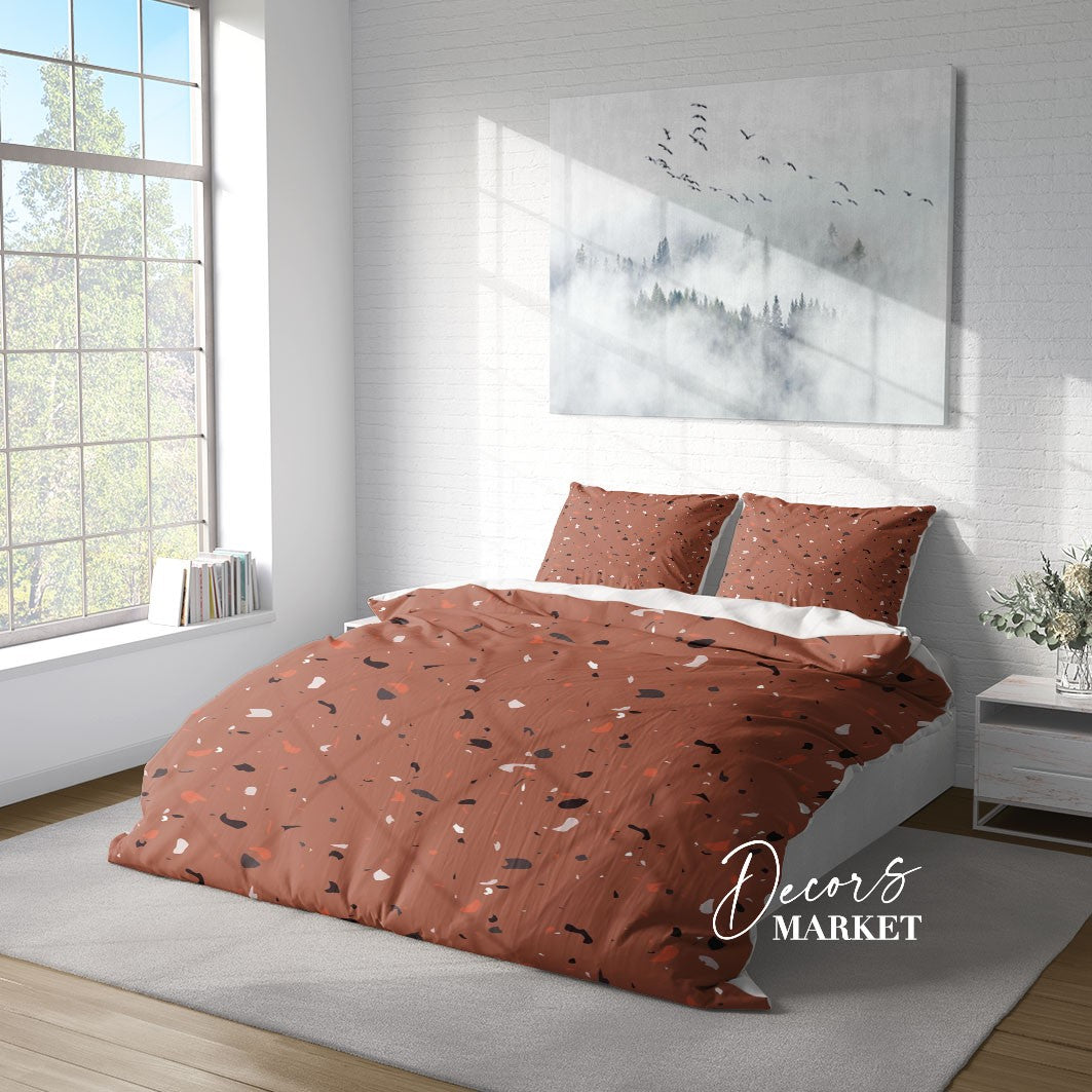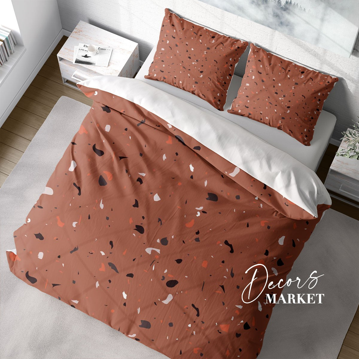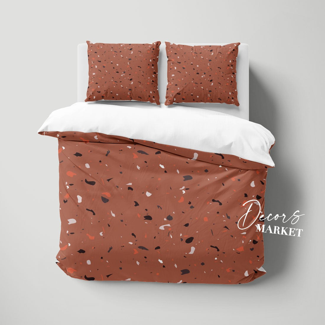 Brown Terrazzo Black Chips Duvet Cover Set w Pillowcases, Brown Texture Marble 3D Quilt Cover, 3pc Single Double Queen King Size Doona Cover