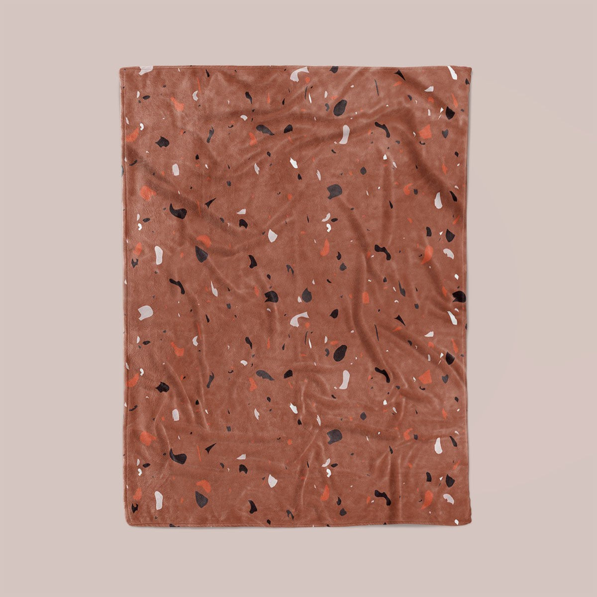 Brown Terrazzo Black Chips Texture Marble Brown Personalized Throw Blanket Custom Fleece Sherpa Throw
