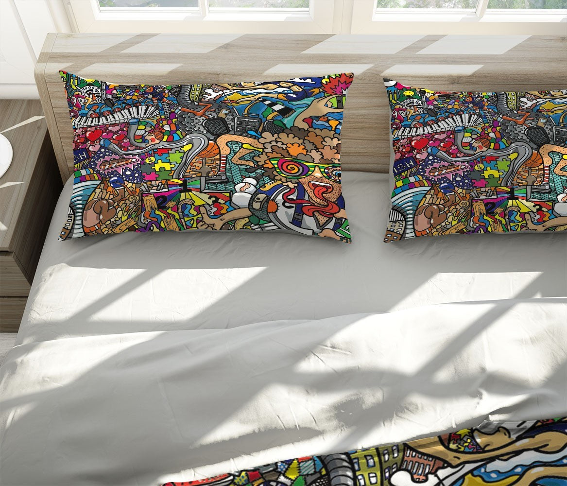 Buildings Clown Duvet Cover Set W Pillow Cover, Multicolour Graffiti Graffiti 3D Quilt Cover, Single Double Queen King Size Doona Cover