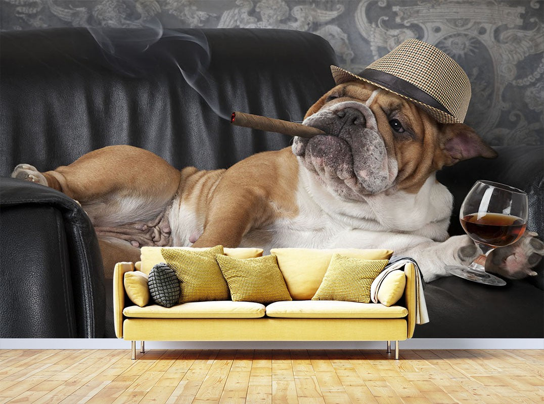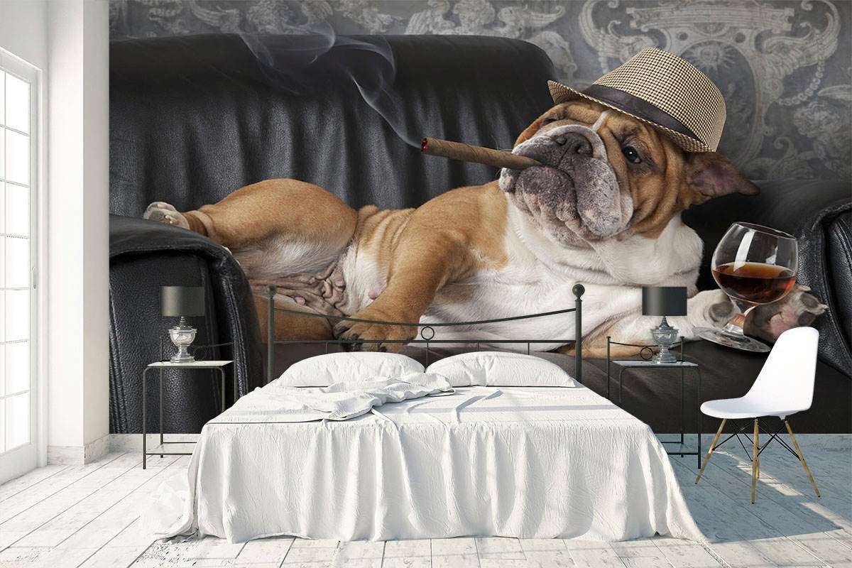 Bulldog Animals Pets Brown Wallpaper Mural,Self-Adhesive Peel And Stick 3D Wall Art,Bedroom Removable Wall Decor
