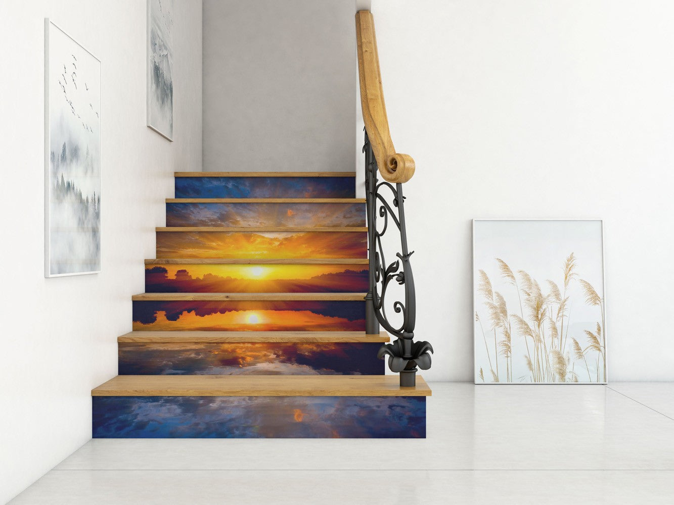 Burning Sky Nature Orange Stair Riser Decals, Waterproof Removable Staircase Decals, Vinyl Peel And Stick Stairs Decal Stickers