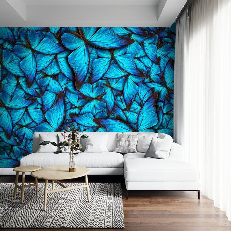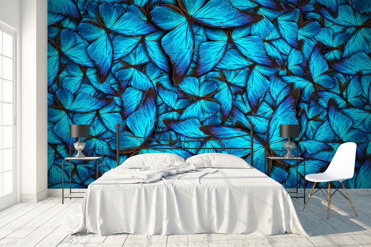 Butterflies Animals Bugs Blue Wallpaper Mural,Self-Adhesive Peel And Stick 3D Wall Decal,Removable Bedroom Wall Decor