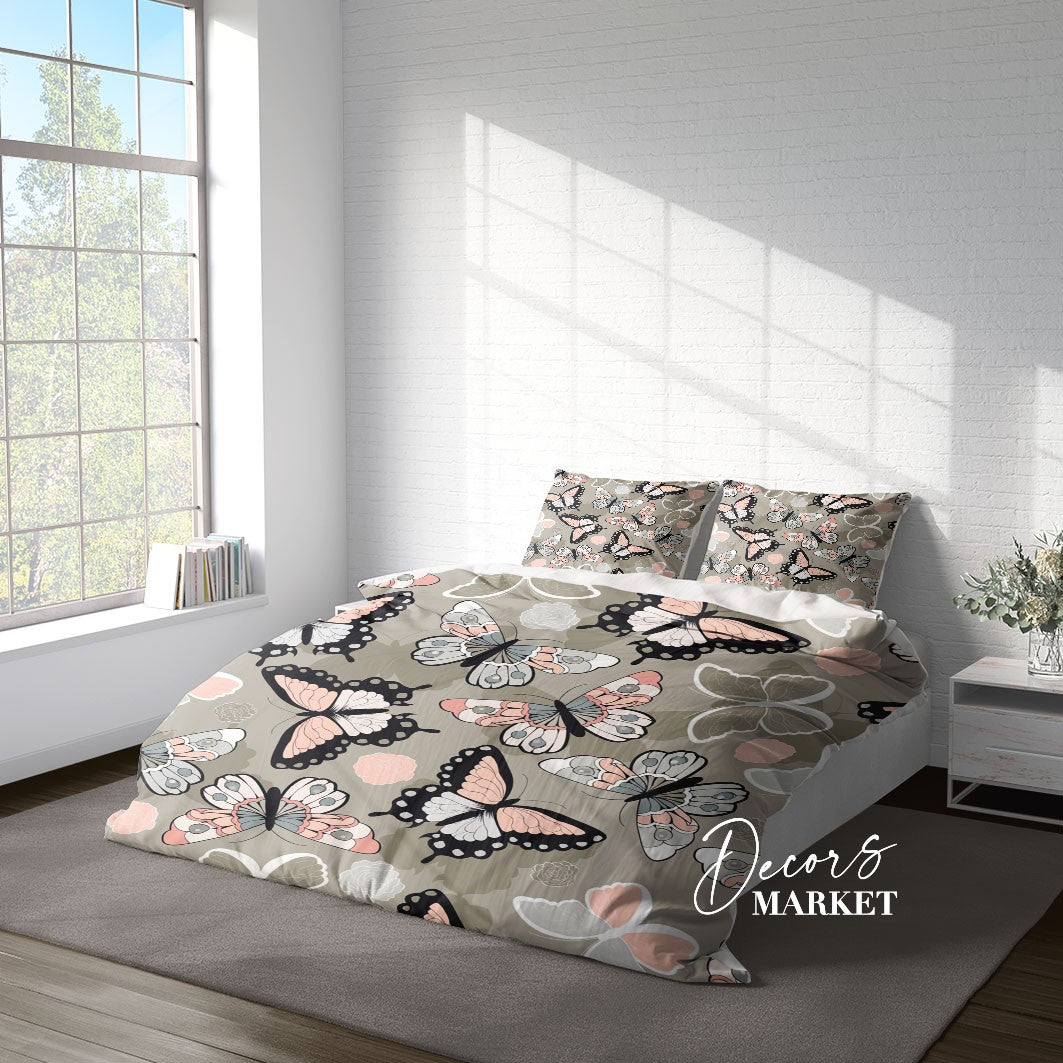 Butterflies Duvet Cover Set w Pillowcases, Pink Floral Flowers 3D Quilt Cover, 3pc Single Double Queen King Size Doona Cover