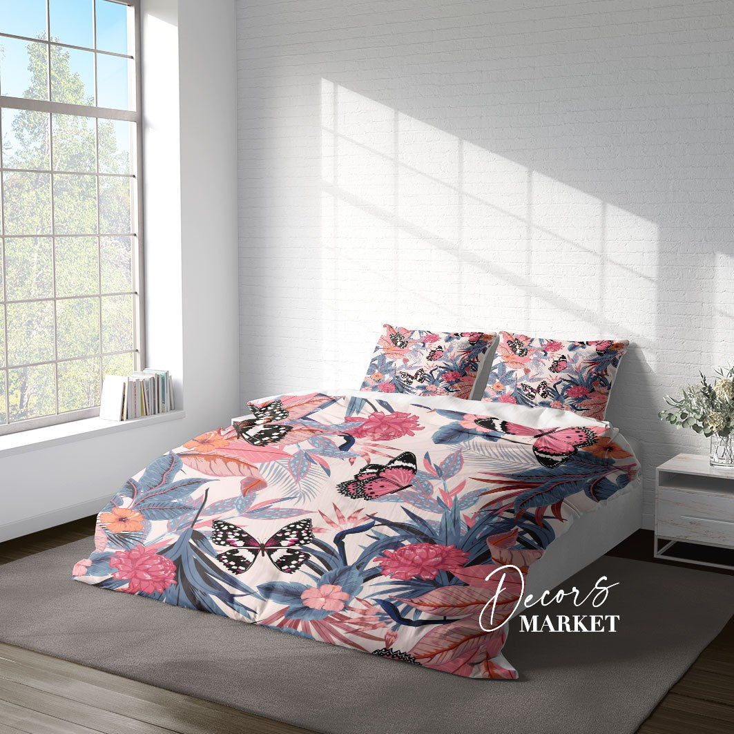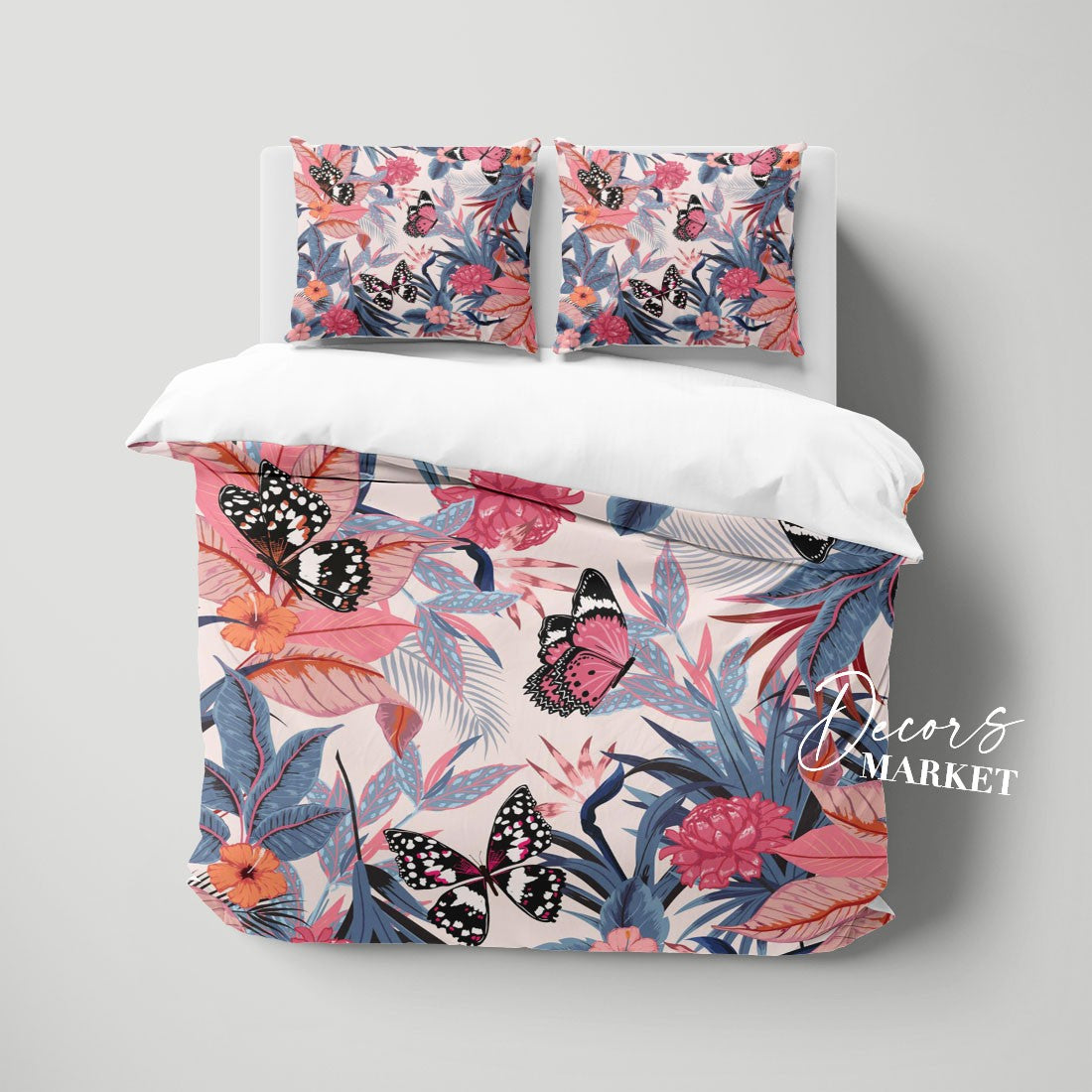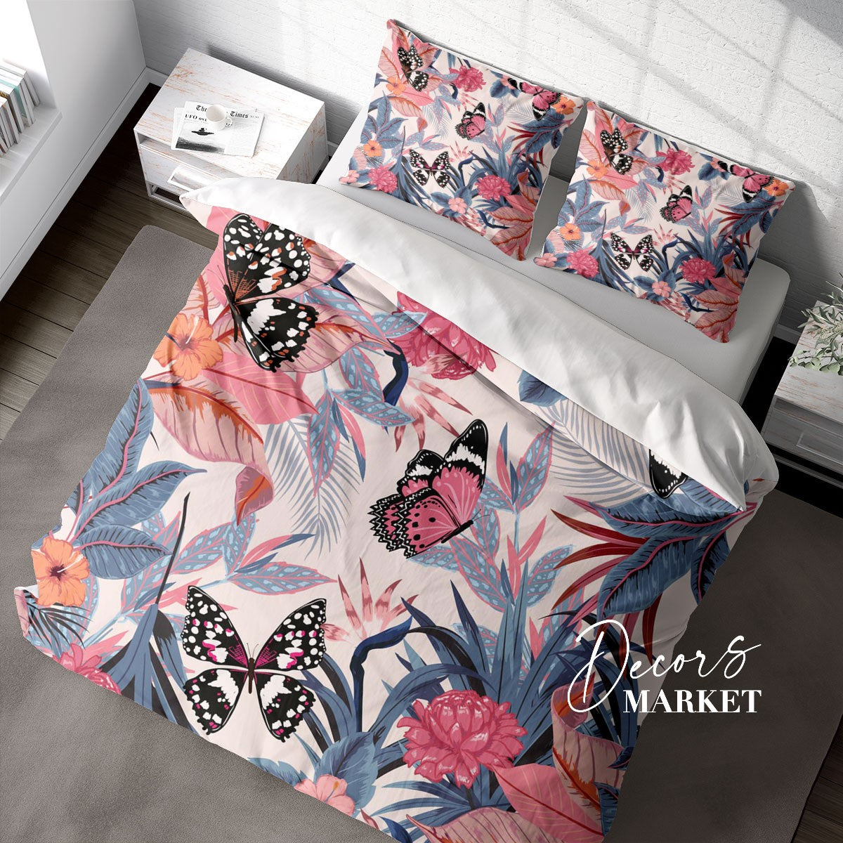 Butterfly Leaves Duvet Cover Set w Pillowcases, Red Floral Patterns 3D Quilt Cover, 3pc Single Double Queen King Size Doona Cover