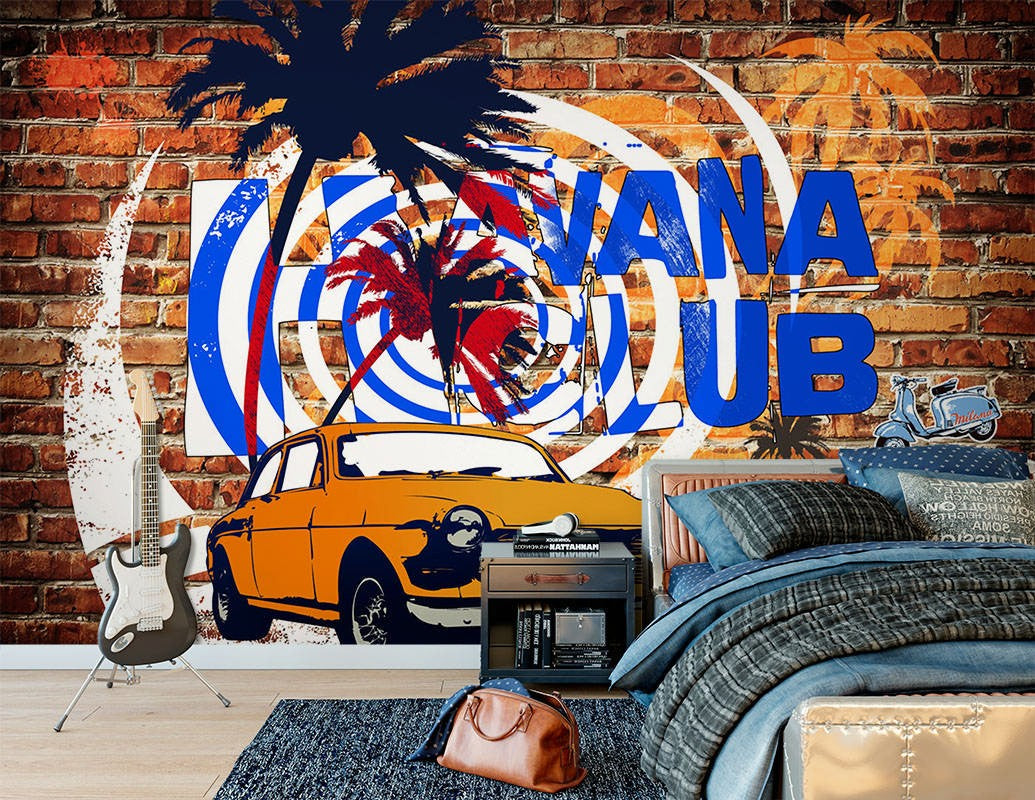 Car Graffiti Multicolour Wallpaper Mural,Self-Adhesive Peel And Stick 3D Wall Decal,Designer Bedroom Wall Decor