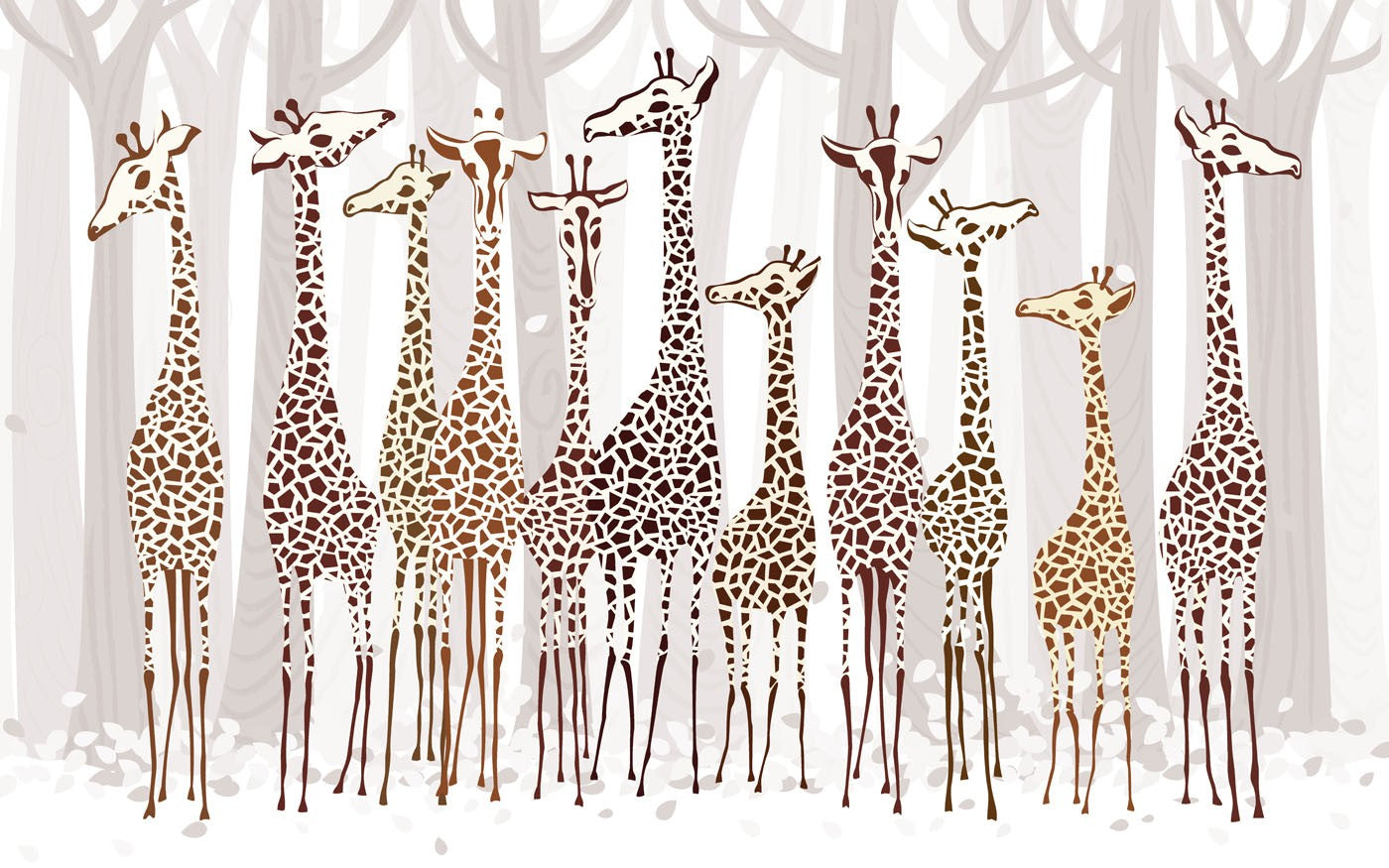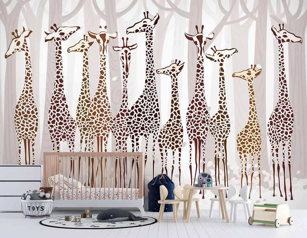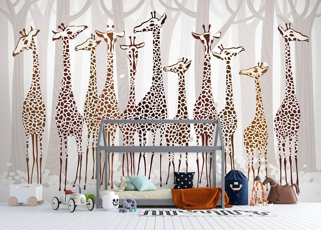 Cartoon Giraffes Kids Animal Creamy Wallpaper Mural,Self-Adhesive Peel And Stick 3D Wall Decor,Bedroom Designer Wall Decor