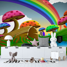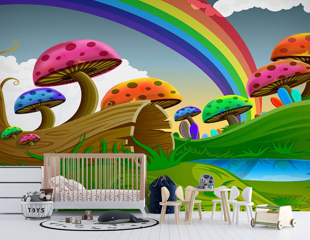Cartoon Mushrooms Kids Colorful Bright Wallpaper Mural,Self-Adhesive Peel And Stick 3D Wall Art,Australian Company Removable Wall Decor