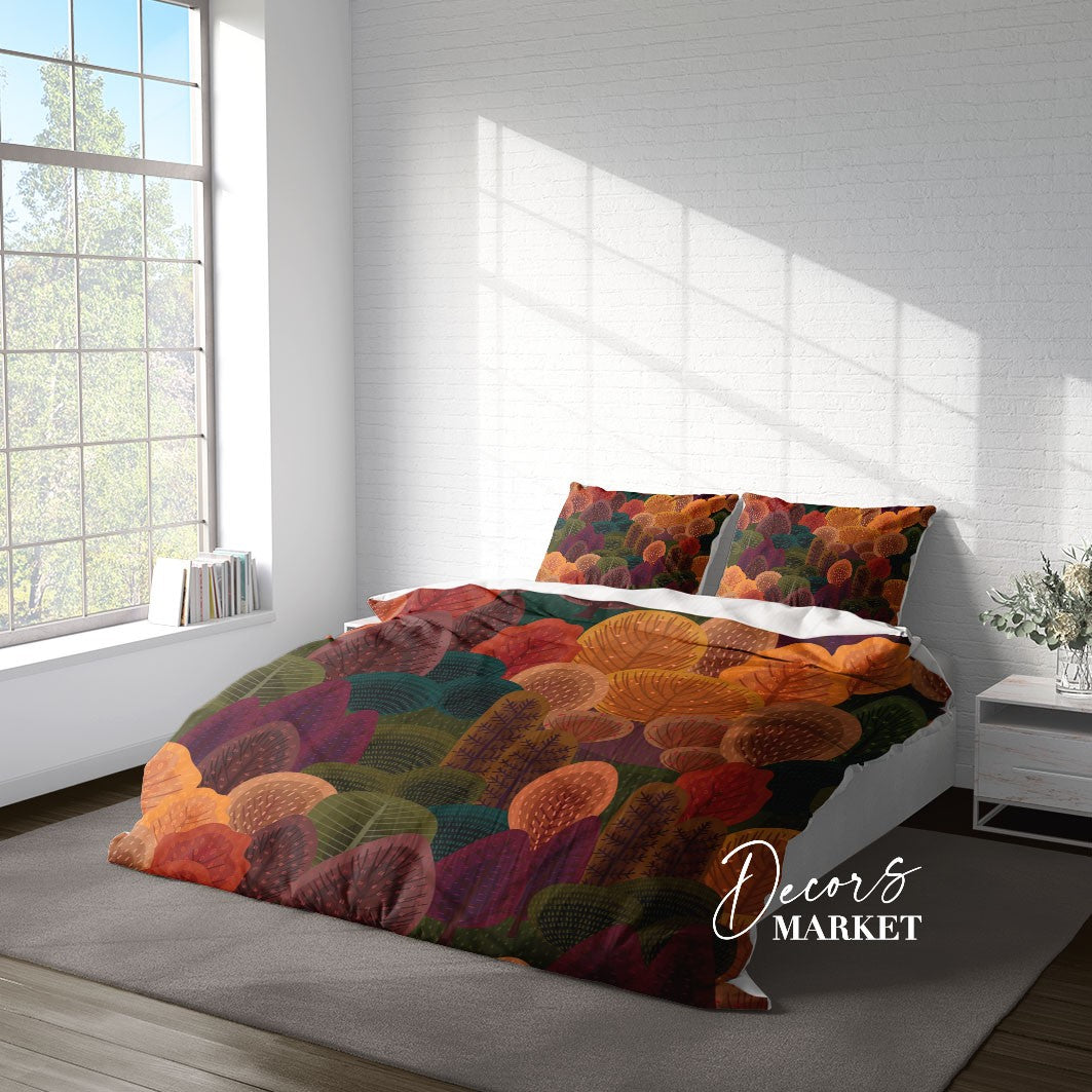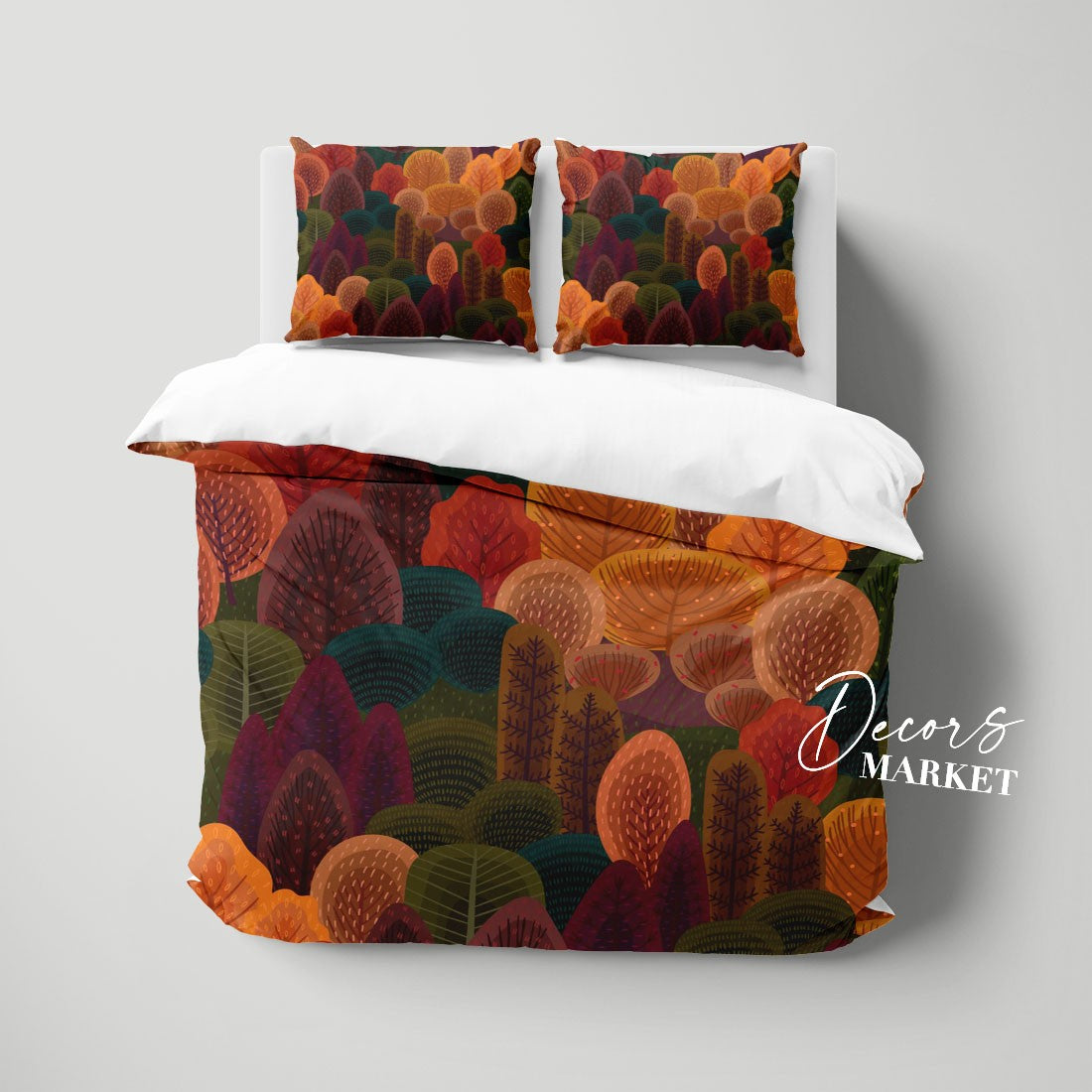 Cartoon Red Leaves Duvet Cover Set w Pillowcases, Brown Floral Leaves 3D Quilt Cover, 3pc Single Double Queen King Size Doona Cover