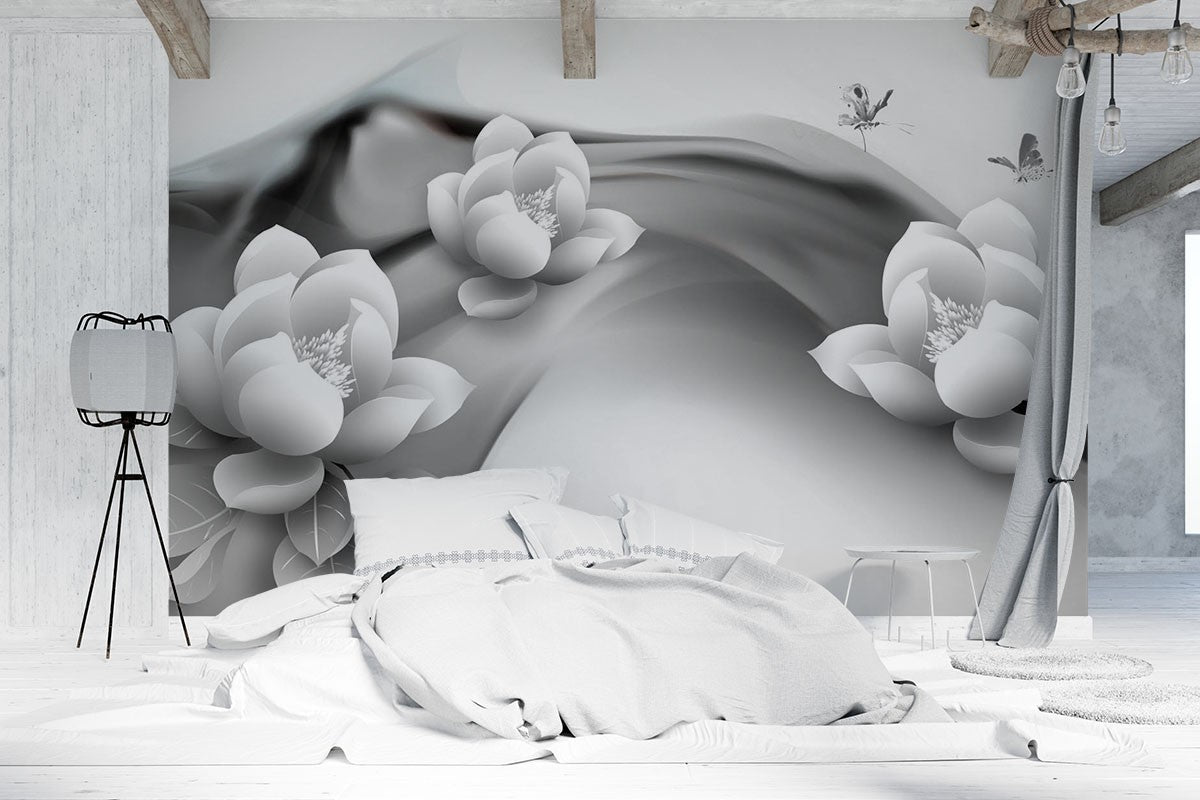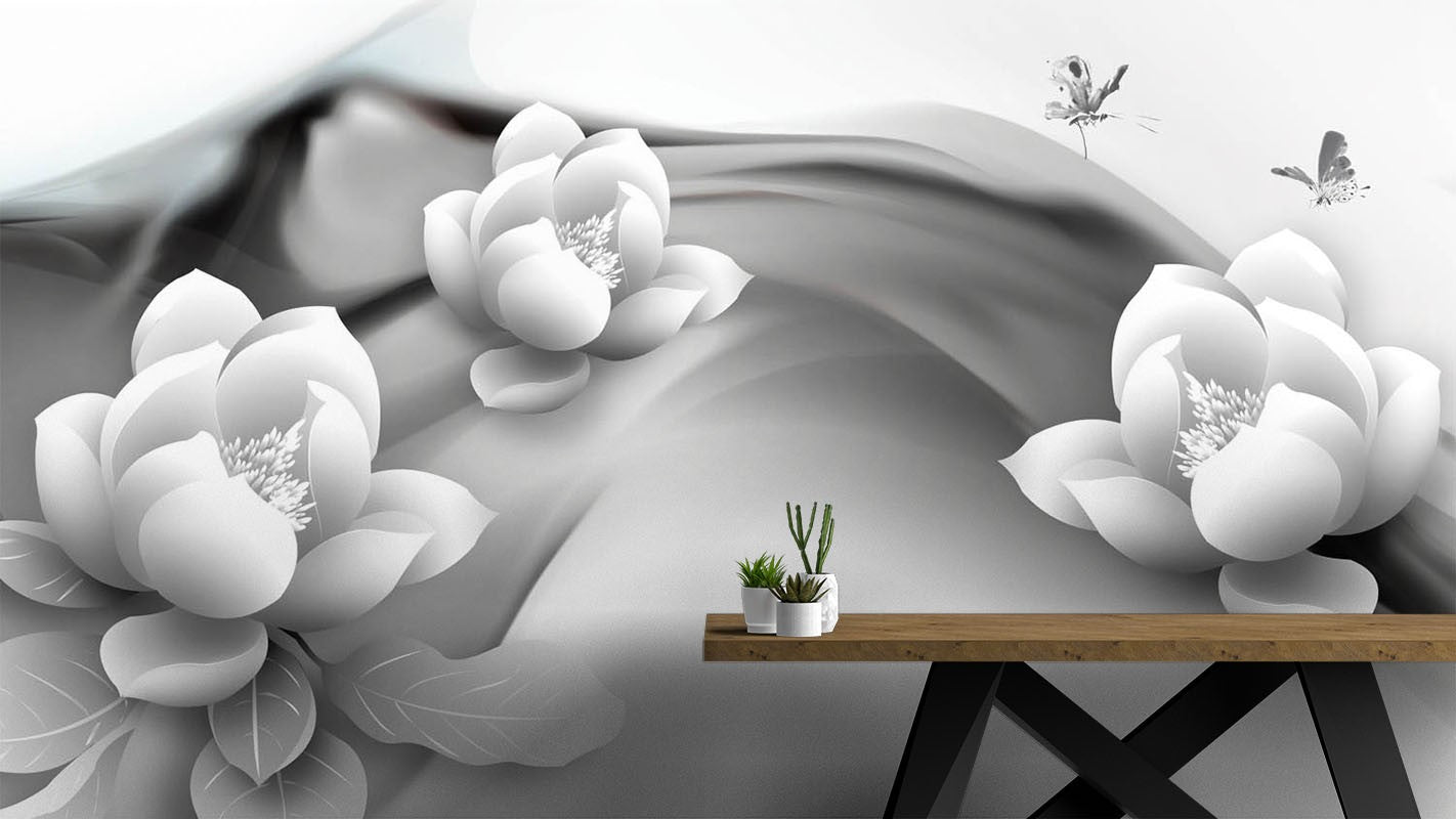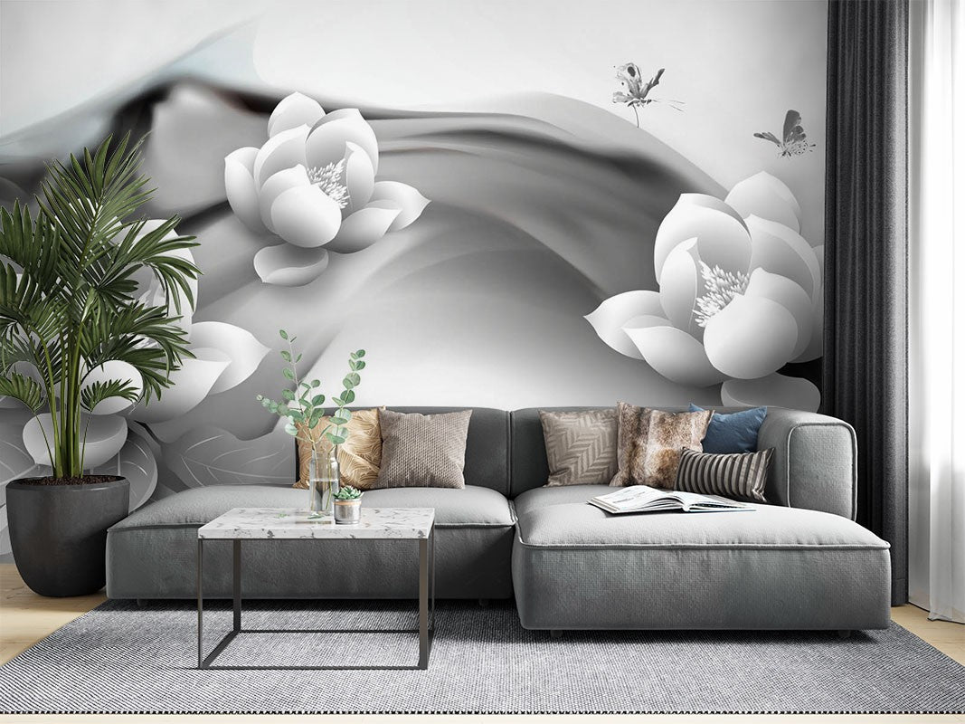 Carving Floral Art 3D Black And White Wallpaper Mural