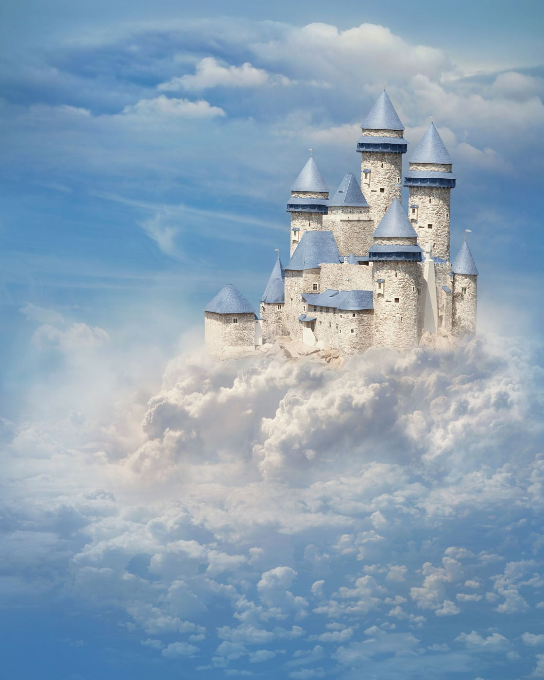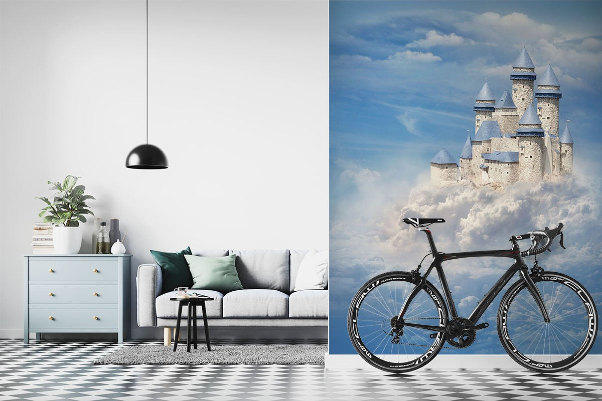 Castle Cloud Art Fantasy Blue Wallpaper Mural,Self-Adhesive Peel And Stick 3D Wall Paper,Removable Bedroom Wall Decor