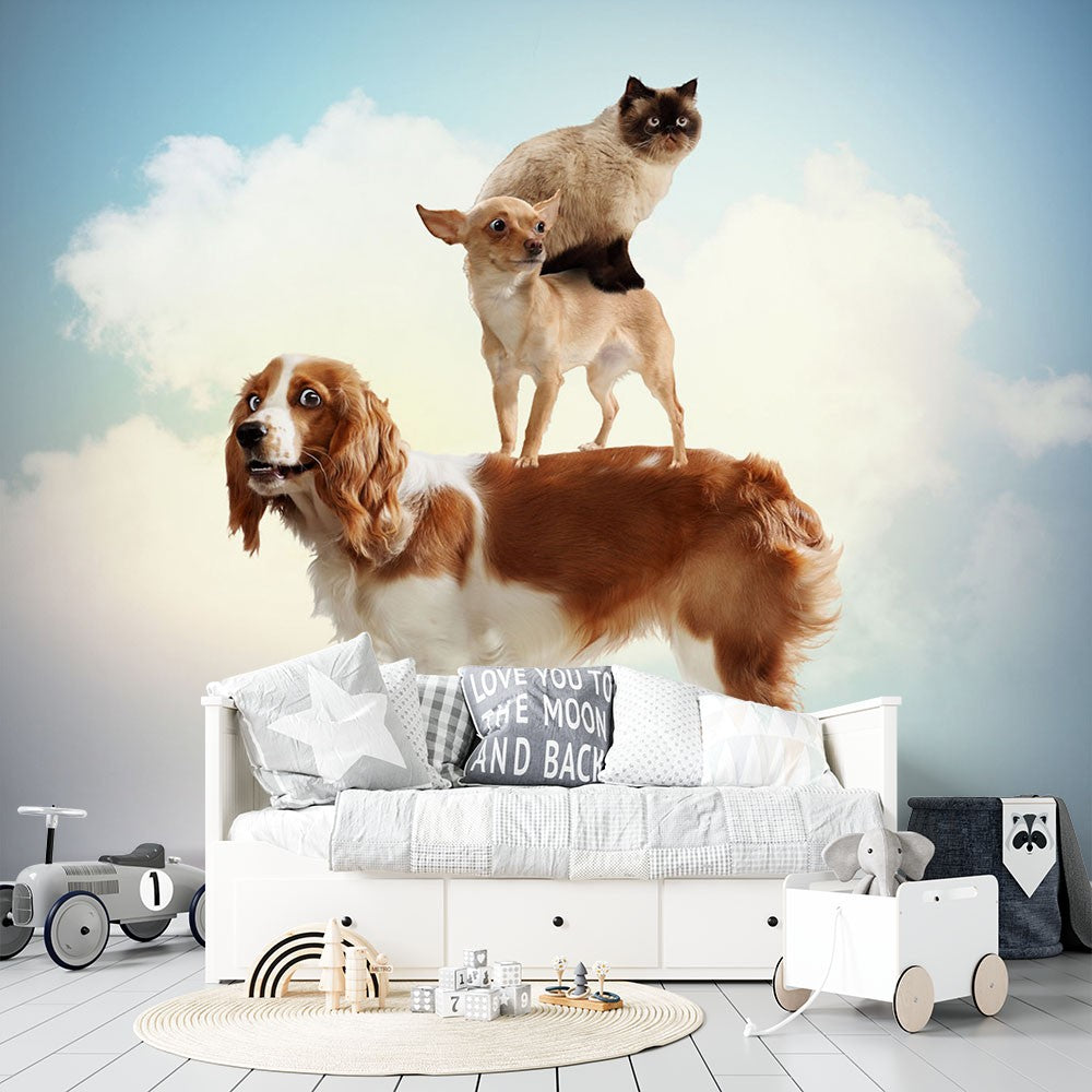 Cat Dogs Stack Kids Animal Bright Wallpaper Mural,Self-Adhesive Peel And Stick 3D Wall Mural,Designer Bedroom Wall Decor