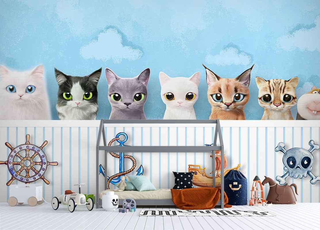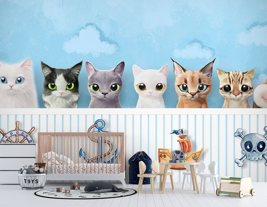 Cat Kids Animal Multicolour Wallpaper Mural,Self-Adhesive Peel And Stick 3D Wall Decor,Removable Designer Wall Decor