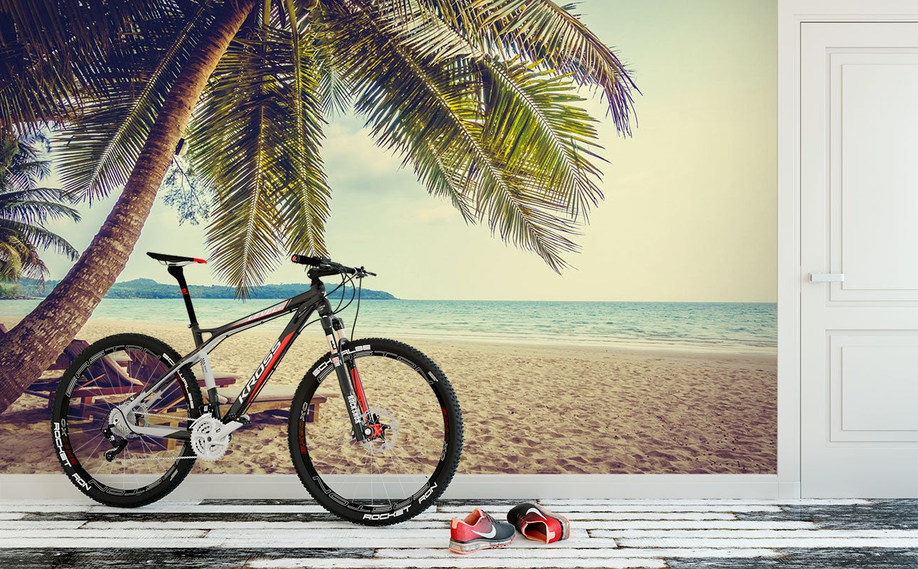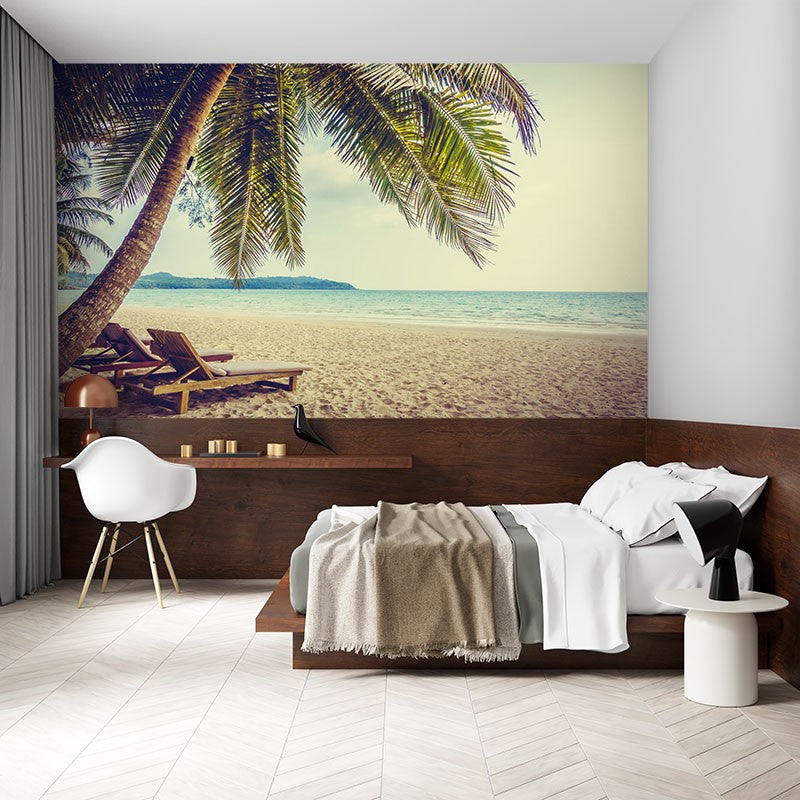 Chaise Lounge Beach Green Wallpaper Mural,Self-Adhesive Peel And Stick 3D Wall Mural,Designer Australian Company Wall Decor