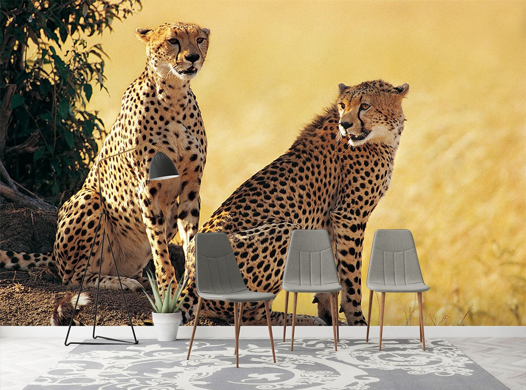 Cheetah Animals Wild Animals Yellow Wallpaper Mural,Self-Adhesive Peel And Stick 3D Wall Mural,Designer Removable Wall Decor