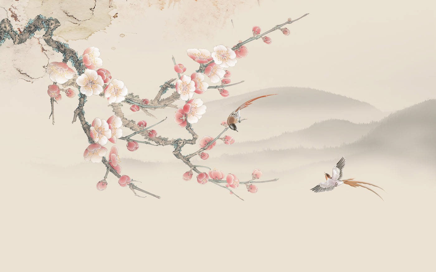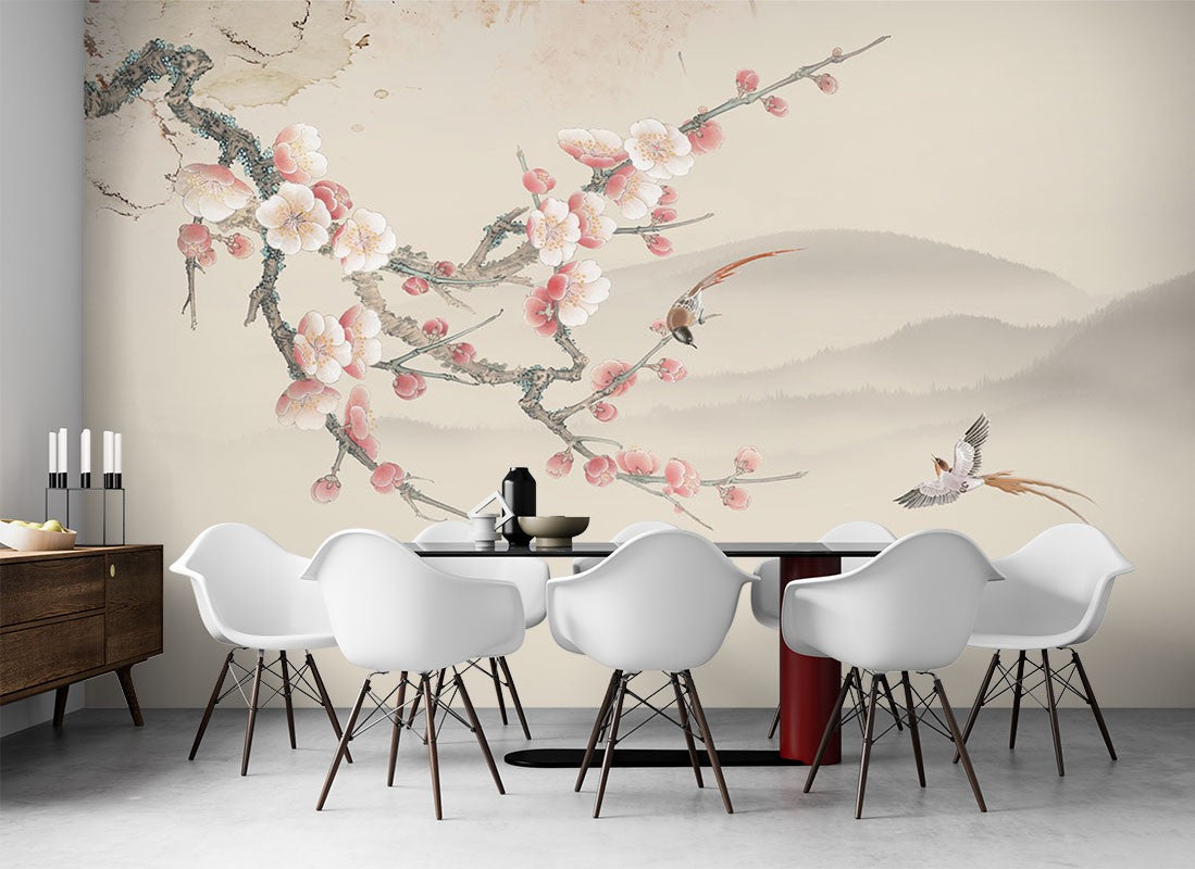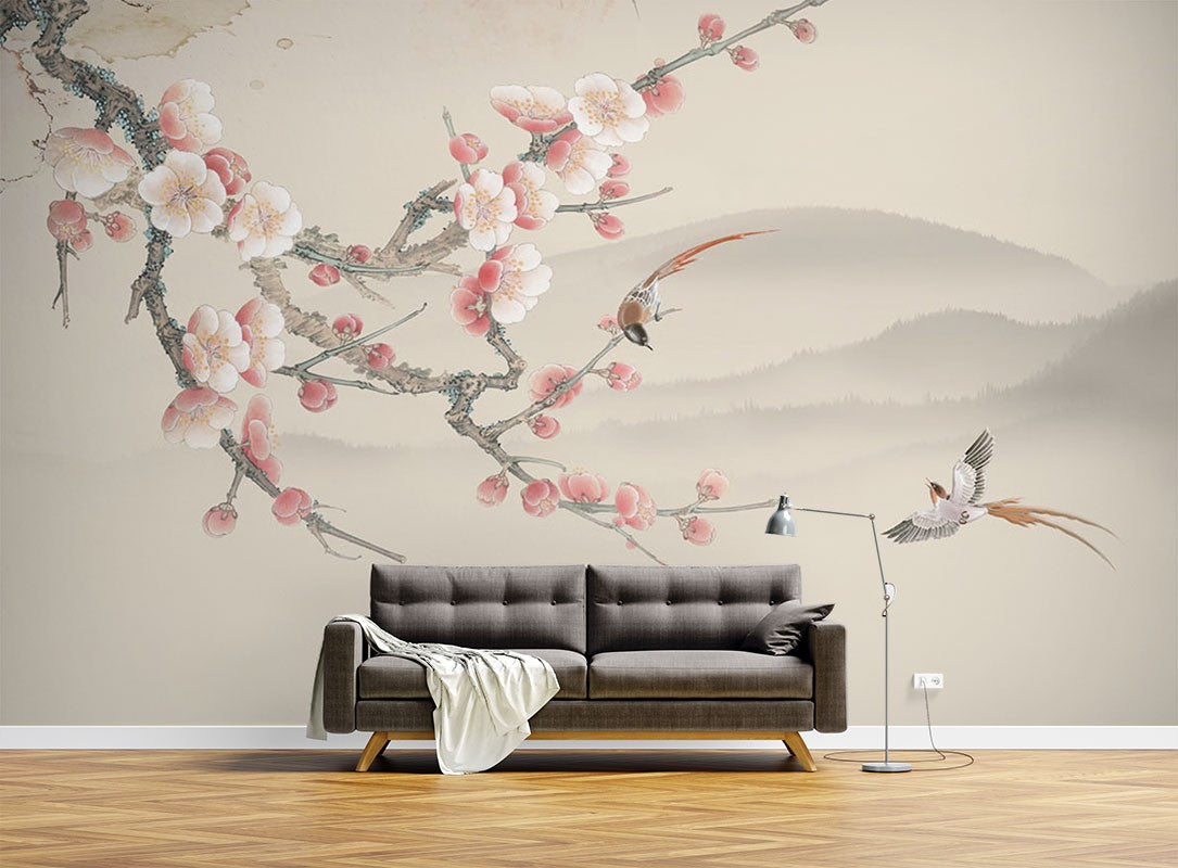 Cherry Blossom Floral Dutch Flowers Creamy Wallpaper Mural,Self-Adhesive Peel And Stick 3D Wall Decor,Designer Bedroom Wall Decor