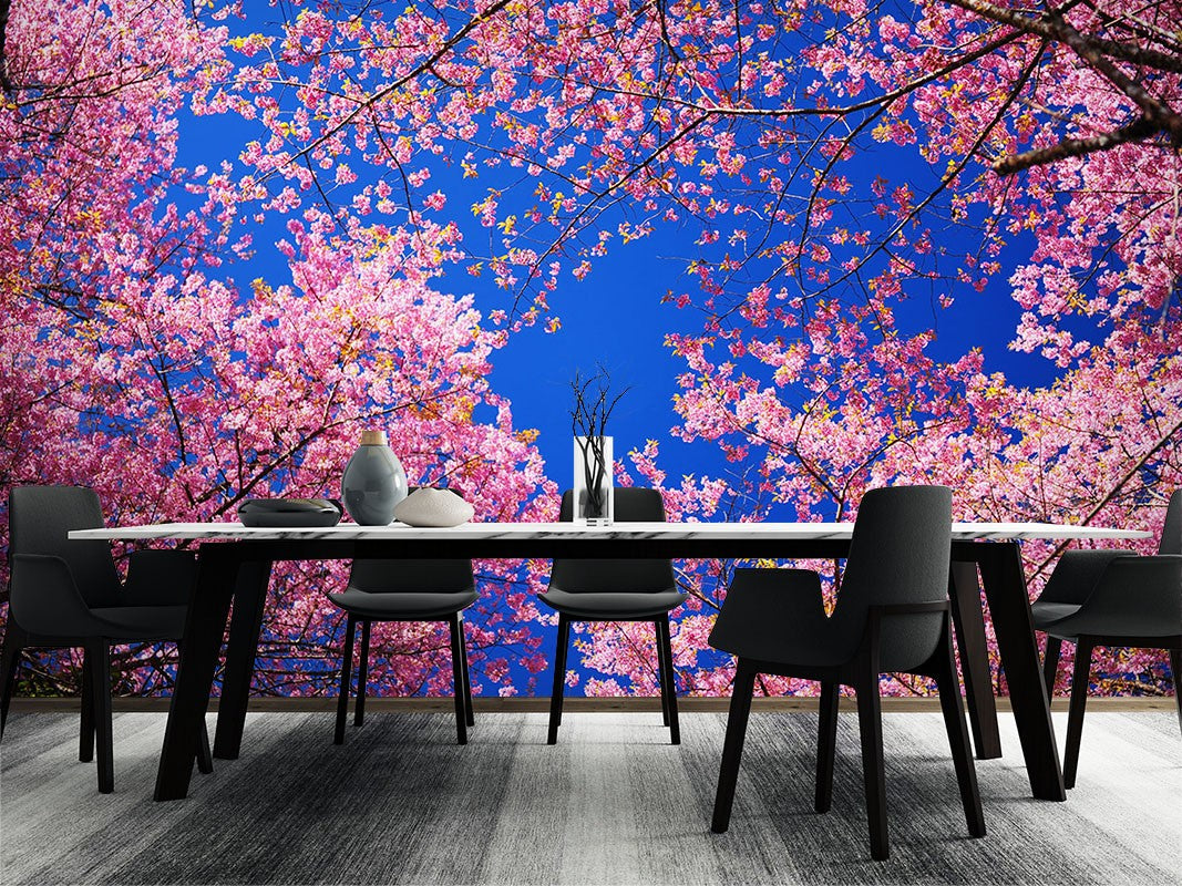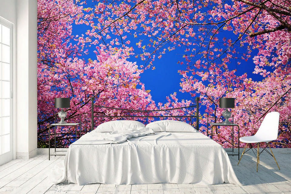 Cherry Blossom Floral Dutch Flowers Pink Wallpaper Mural,Self-Adhesive Peel And Stick 3D Wall Decor,Designer Removable Wall Decor