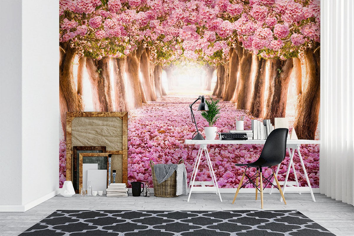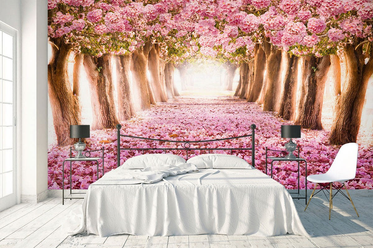 Cherry Blossom Floral Dutch Flowers Pink Wallpaper Mural,Self-Adhesive Peel And Stick 3D Wall Decor,Designer Removable Wall Decor