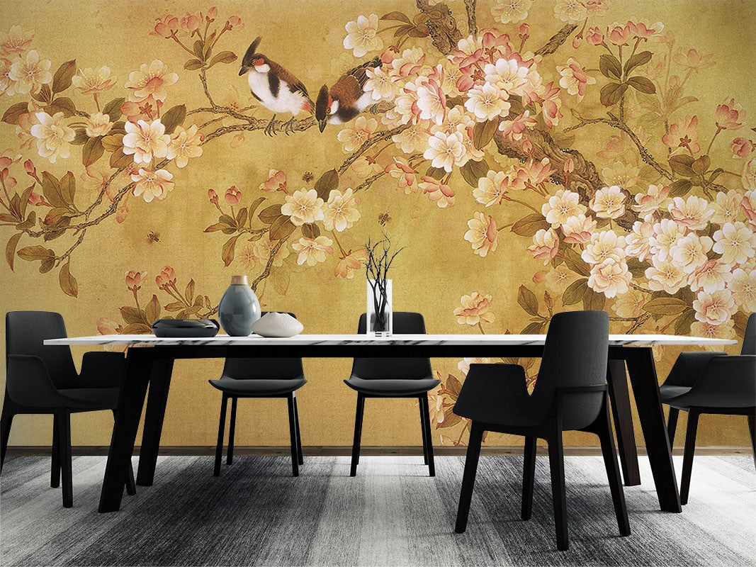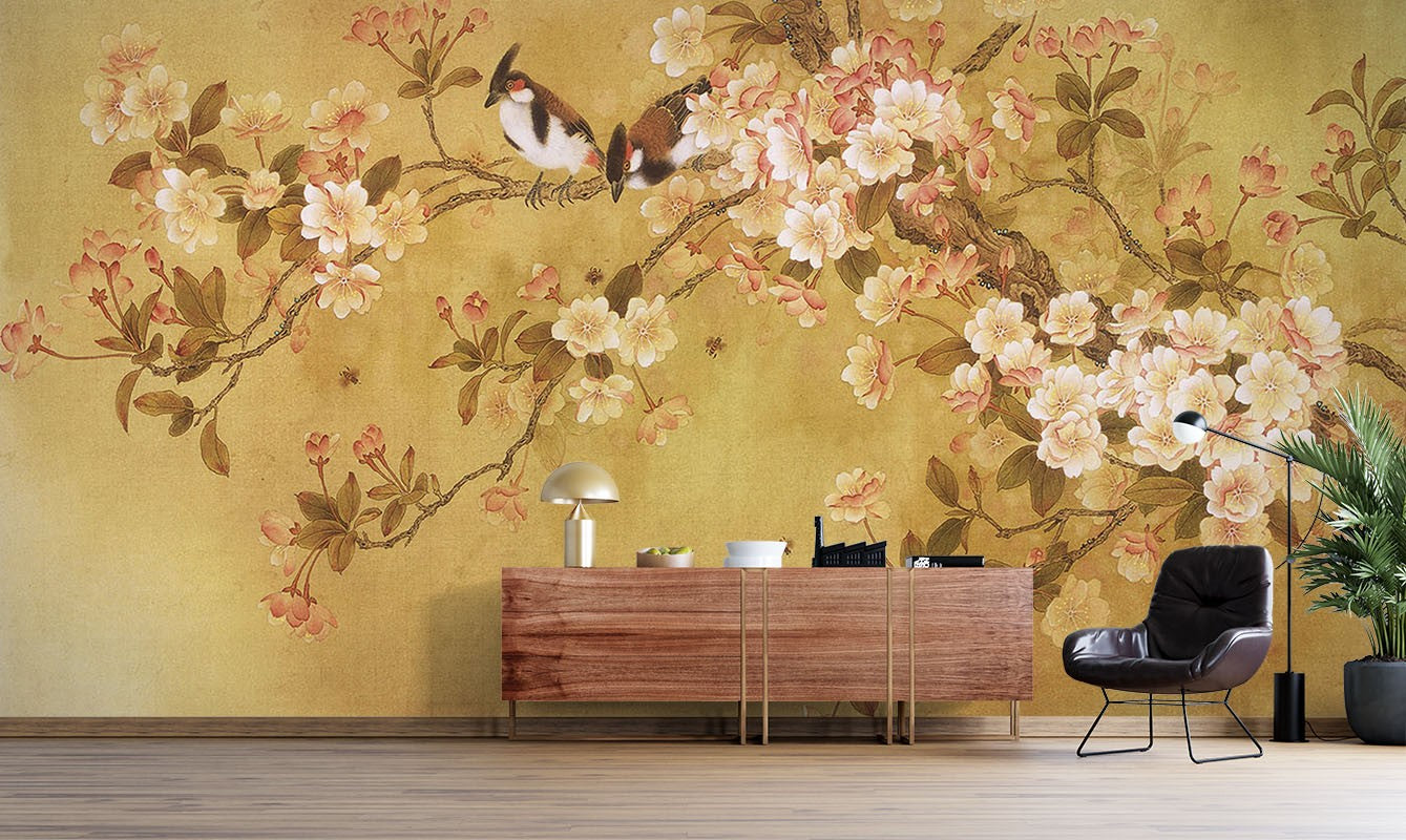 Cherry Blossom Floral Dutch Flowers Yellow Wallpaper Mural,Self-Adhesive Peel And Stick 3D Wall Decor,Bedroom Designer Wall Decor