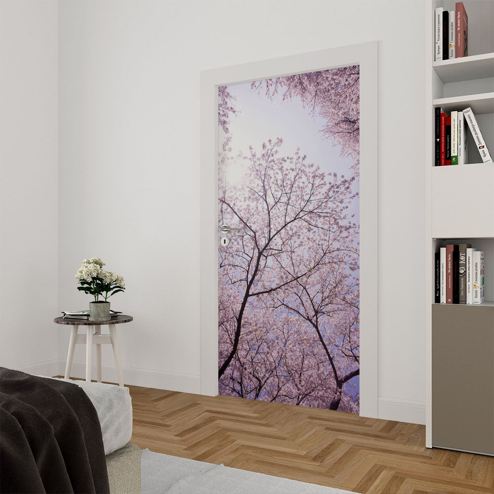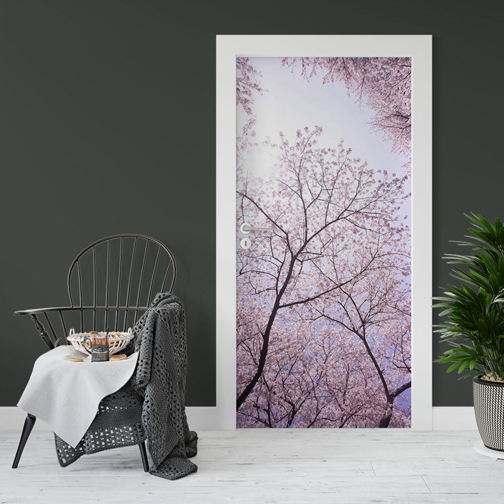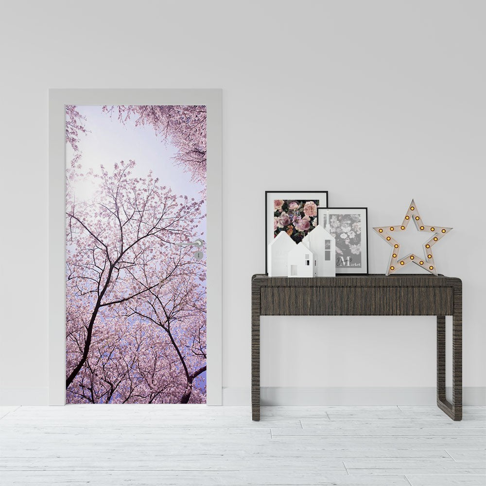 Cherry Blossom Floral Flowers Door Wrap, Customized Mural For Door, Door Mural Sticker, Peel And Stick Door Cover, Removable Door Decal