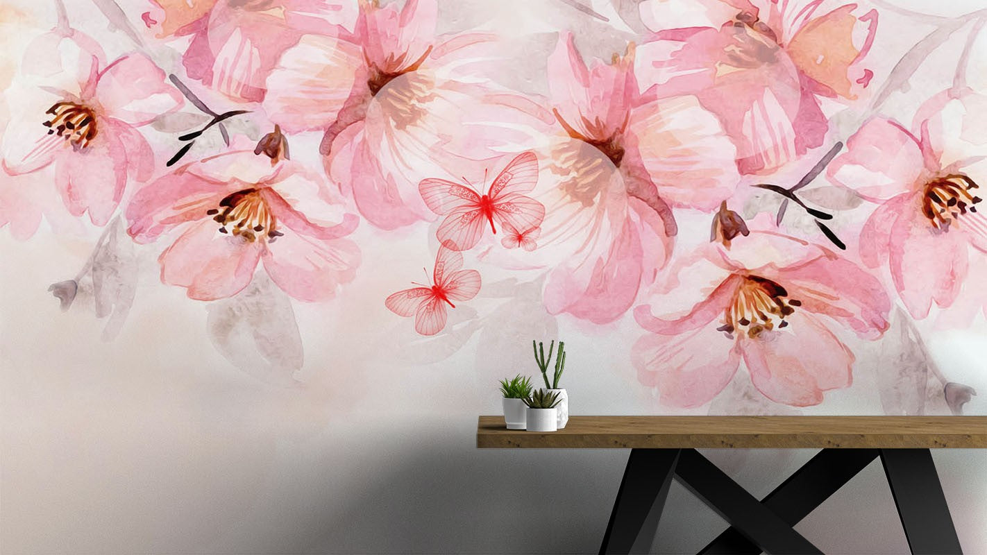 Cherry Blossoms Floral Flowers Pink Wallpaper Mural