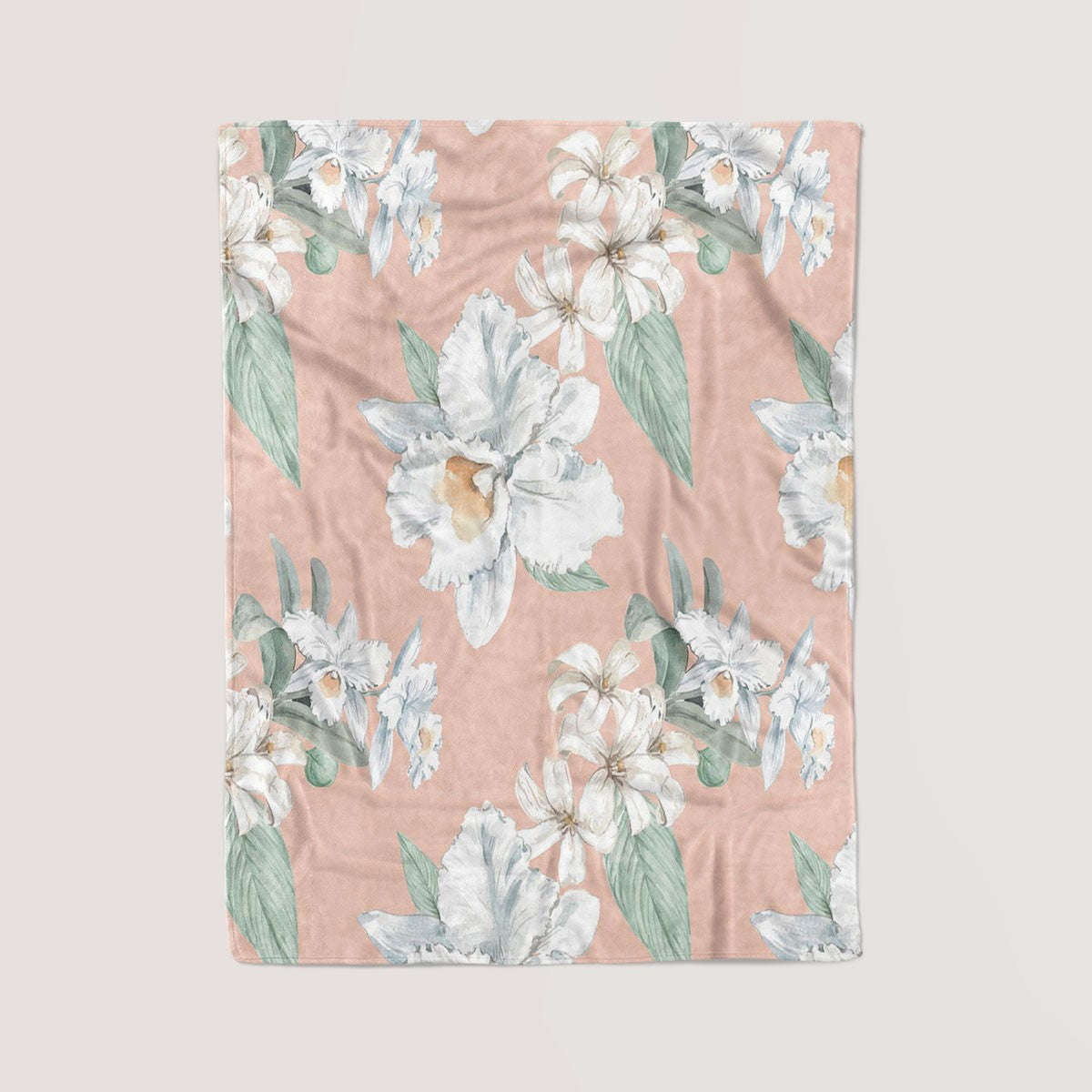Chickweed Leaf Watercolor Floral Patterns Pink Personalized Throw Blanket Custom Fleece Sherpa Throw