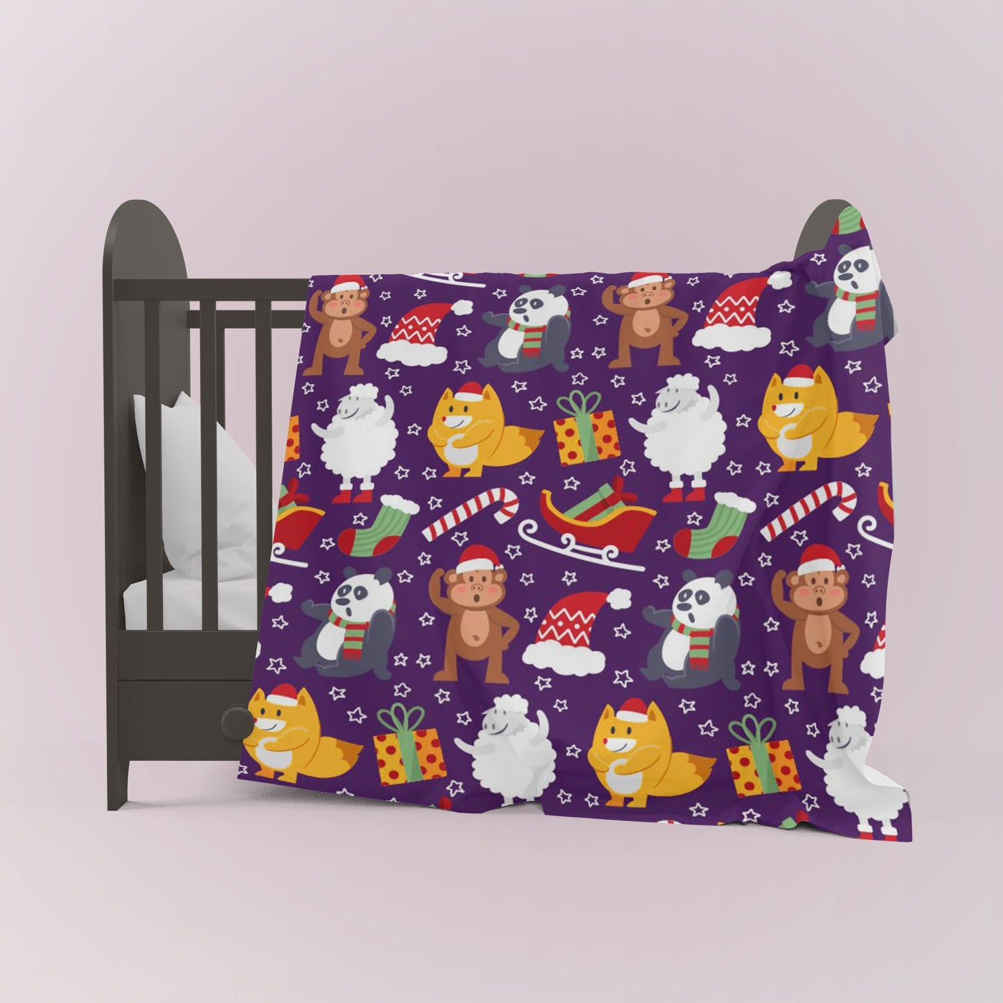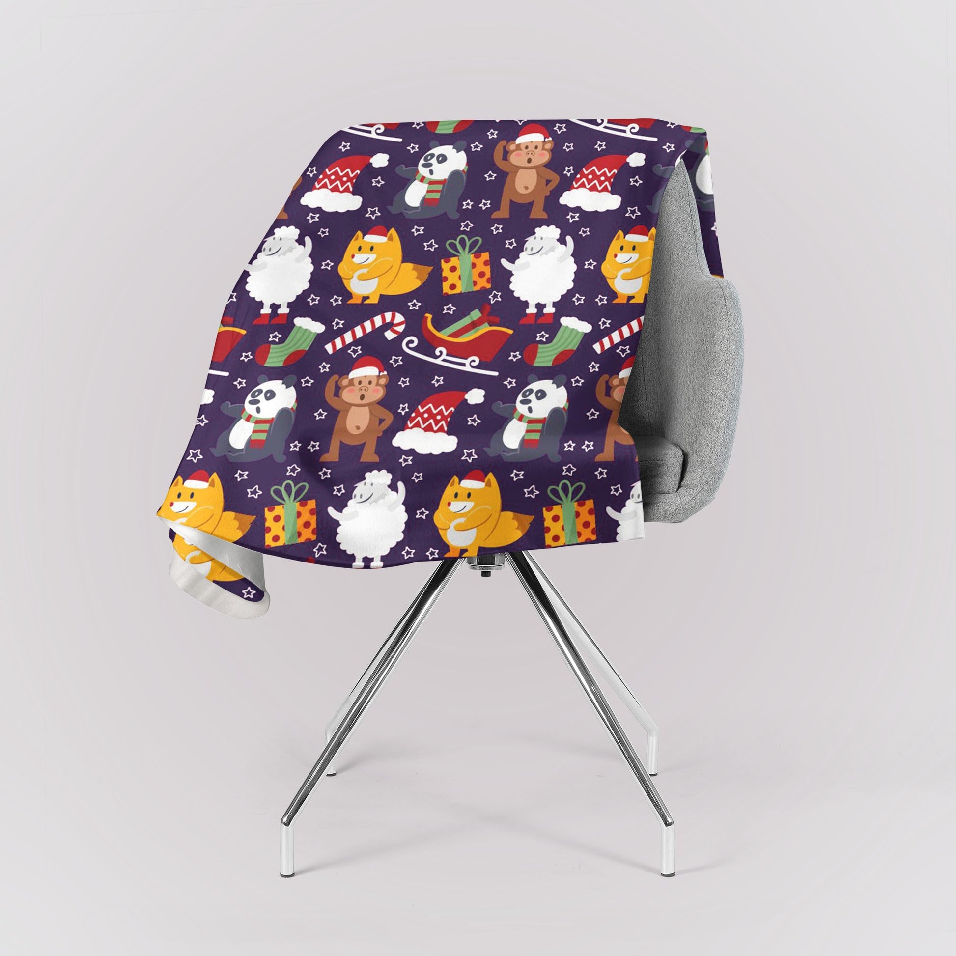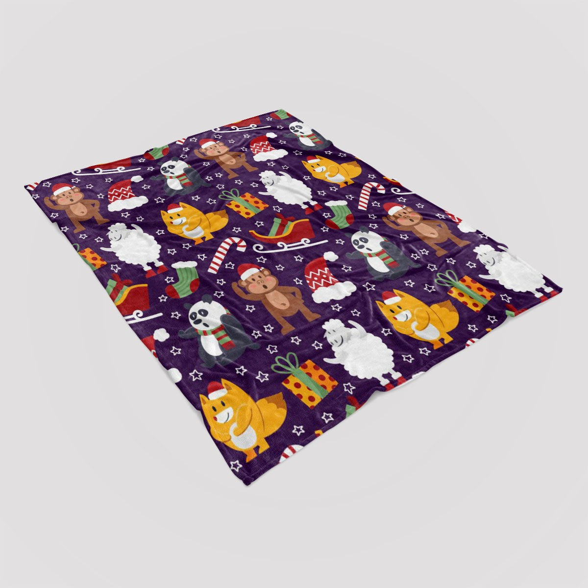 Christmas Animals Gift Kids Patterns Purple Personalized Throw Blanket Custom Fleece Sherpa Throw