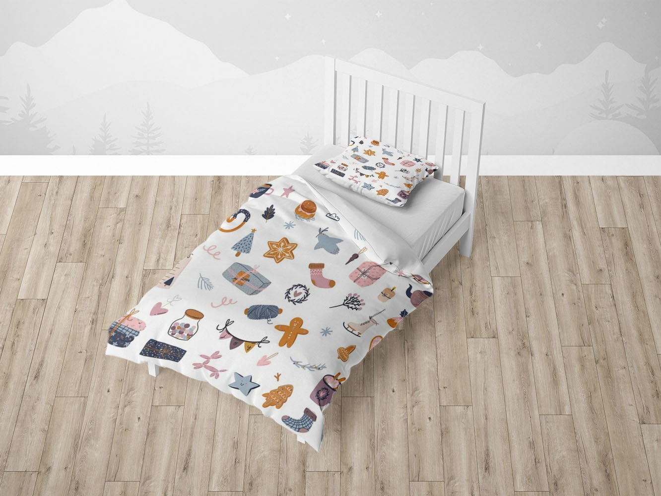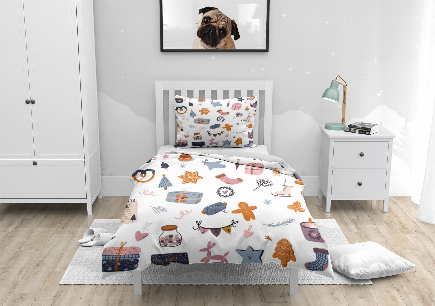 Christmas Cute Icon Duvet Cover Set w Pillowcases, Creamy Kids Patterns 3D Quilt Cover, 3pc Single Double Queen King Size Doona Cover