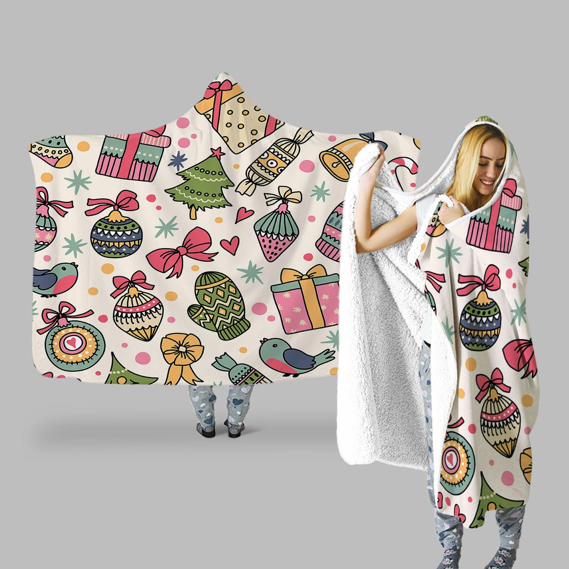 Christmas Decors Texture Patterns Multicolour Personalized Hooded Throw Blanket Fleece Hoodie Cape