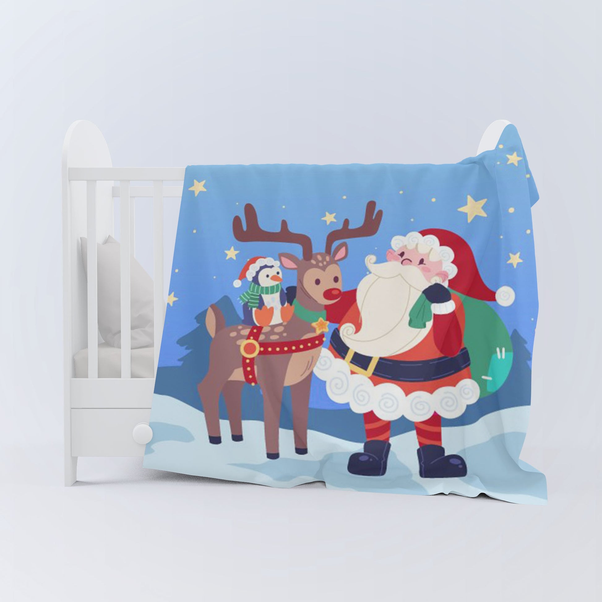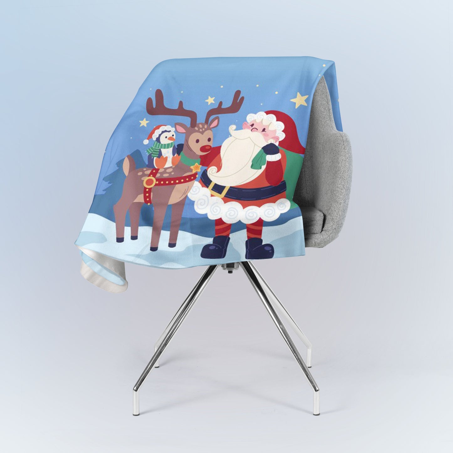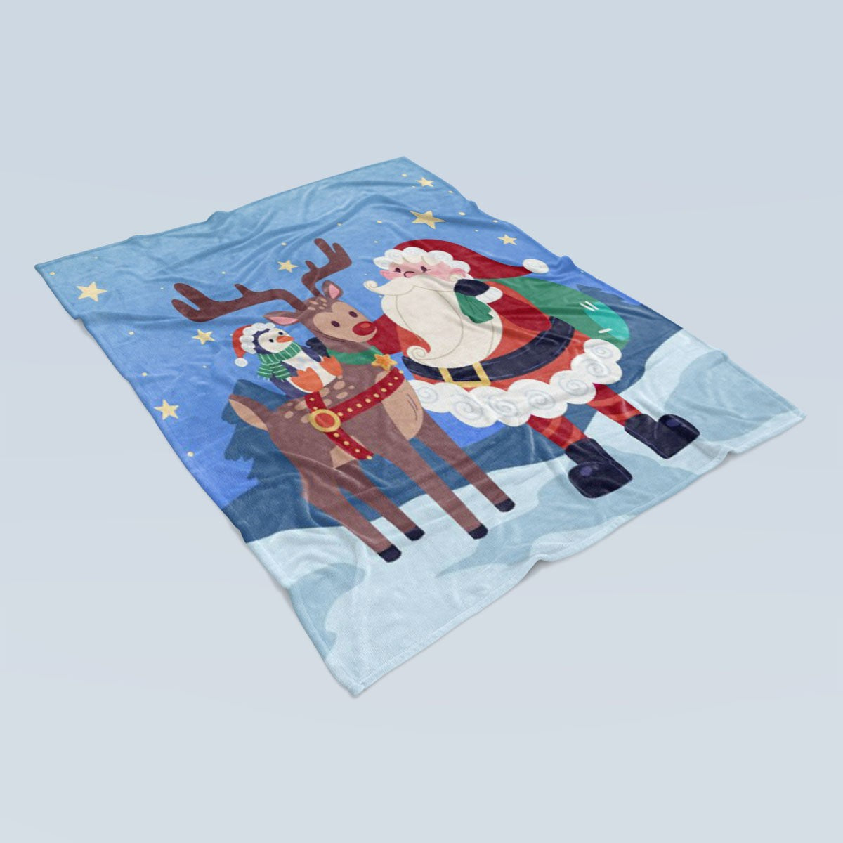 Christmas Eve Santa Kids Cartoon Blue Personalized Throw Blanket Custom Fleece Sherpa Throw