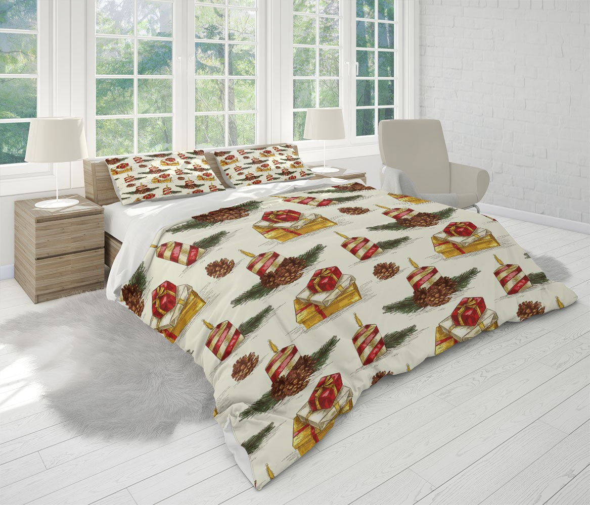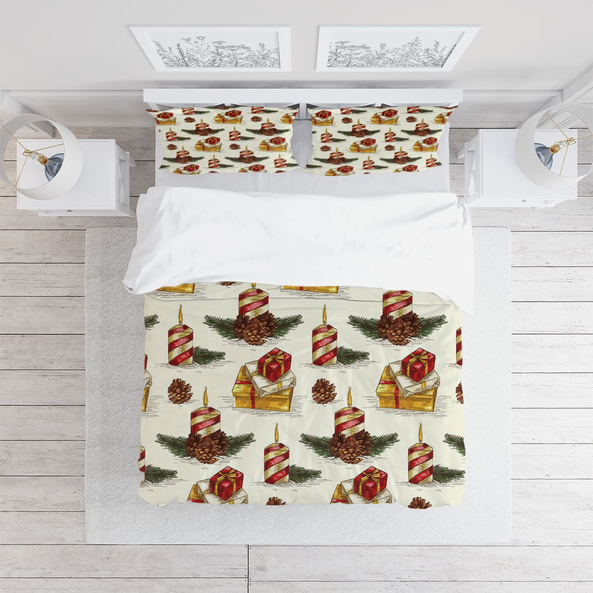 Christmas Gift Boxes Duvet Cover Set W Pillowcases, Yellow Texture Patterns 3D Quilt Cover, 3Pc Single Double Queen King Size Doona Cover