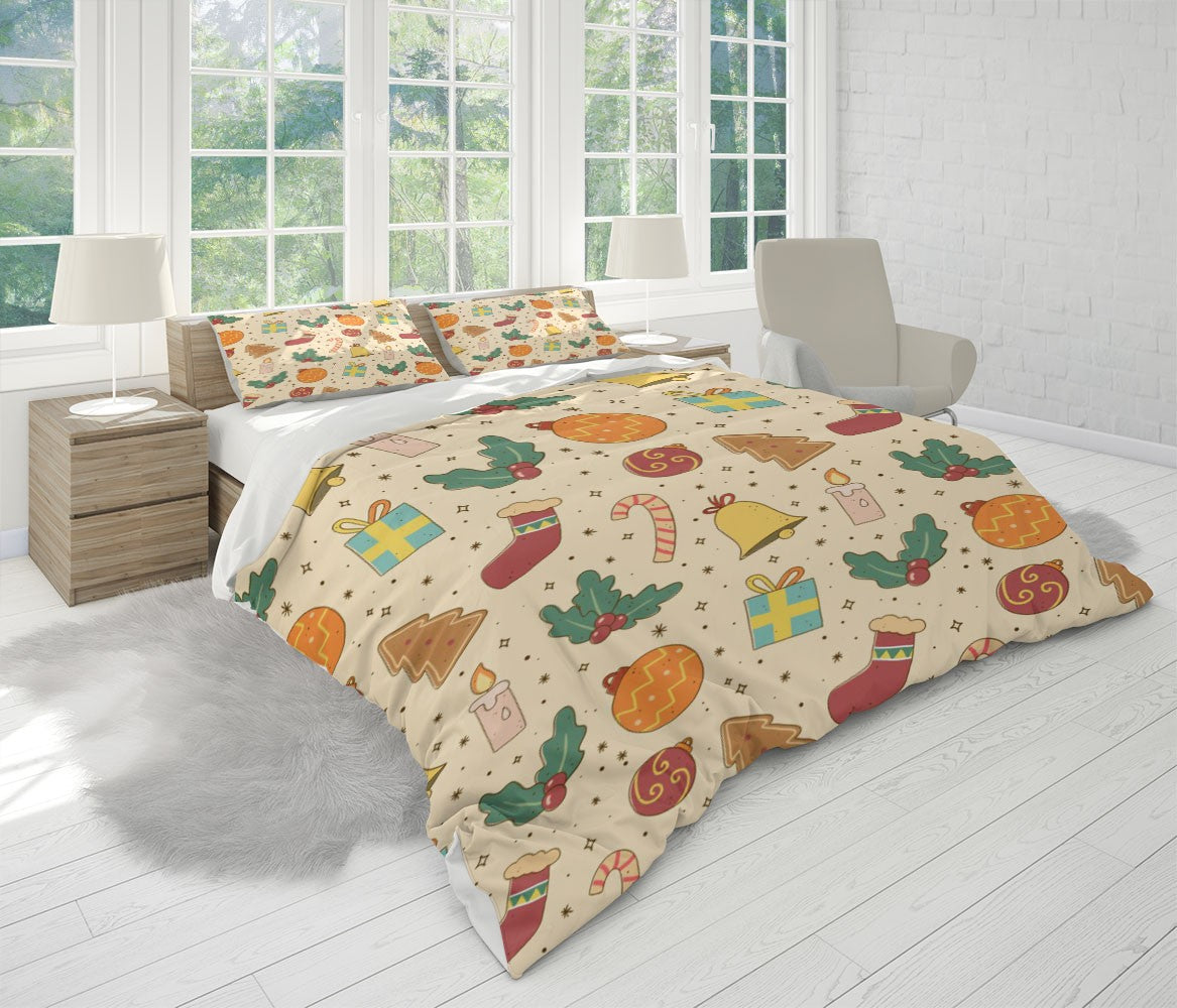 Christmas Gifts Duvet Cover Set W Pillowcases, Yellow Texture Patterns 3D Quilt Cover, 3Pc Single Double Queen King Size Doona Cover