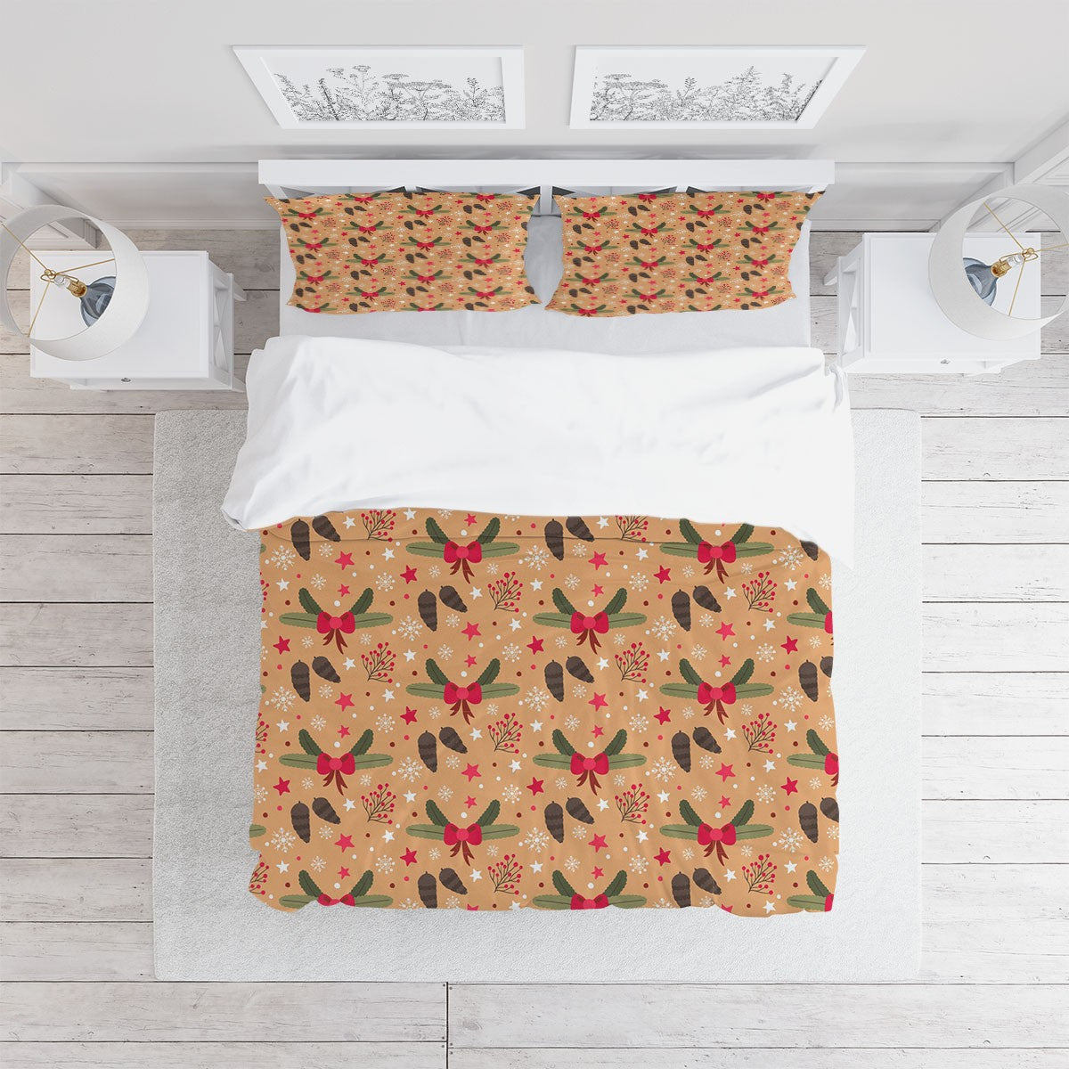 Christmas Pine Cones Duvet Cover Set W Pillowcases, Red Floral Patterns 3D Quilt Cover, 3Pc Single Double Queen King Size Doona Cover