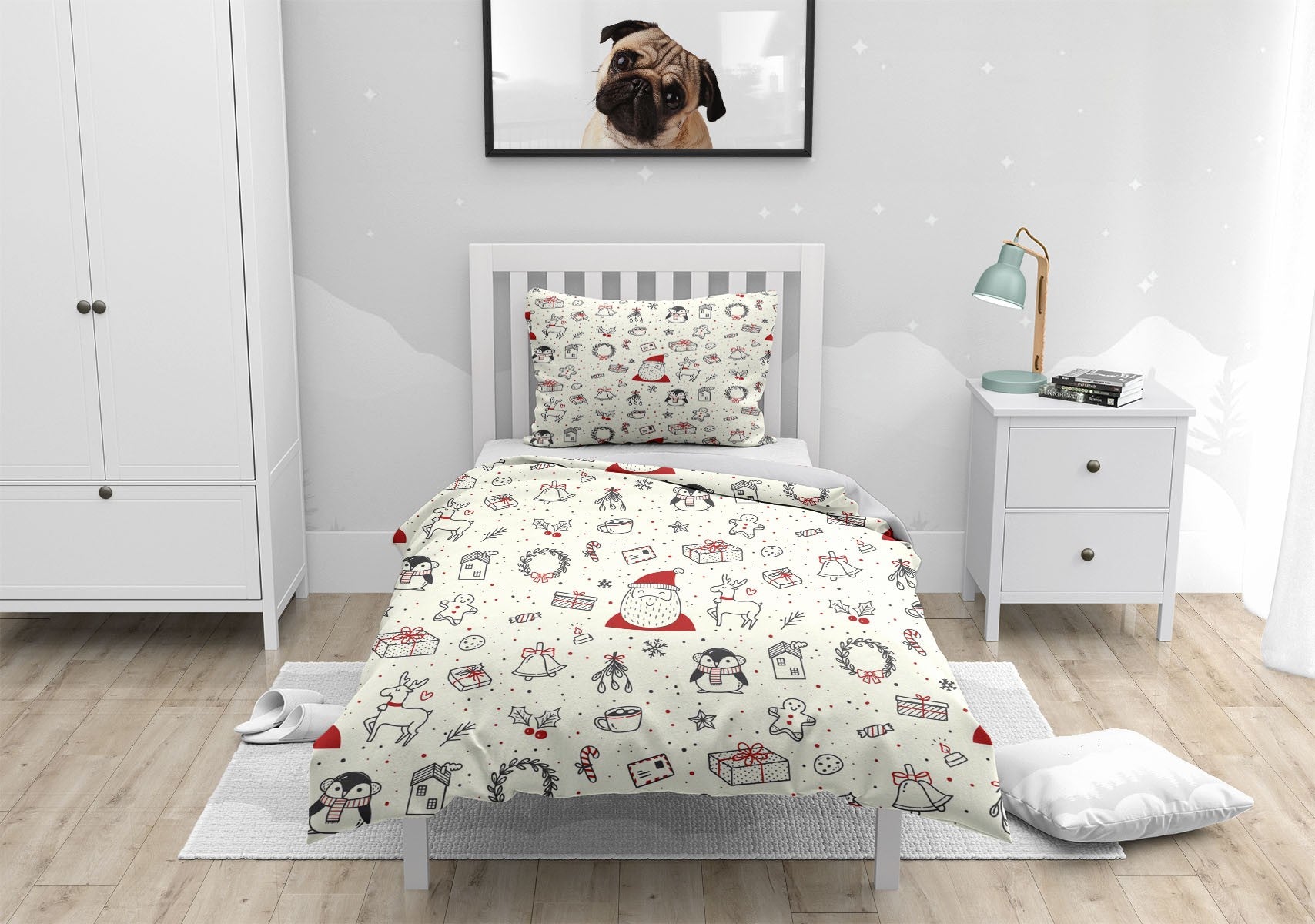 Christmas Santa Elk Duvet Cover Set w Pillowcases, Red Kids Patterns 3D Quilt Cover, 3pc Single Double Queen King Size Doona Cover