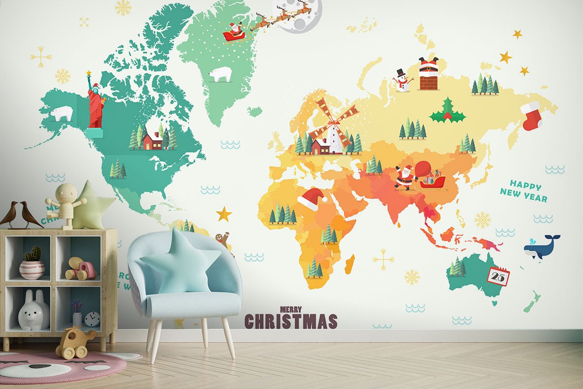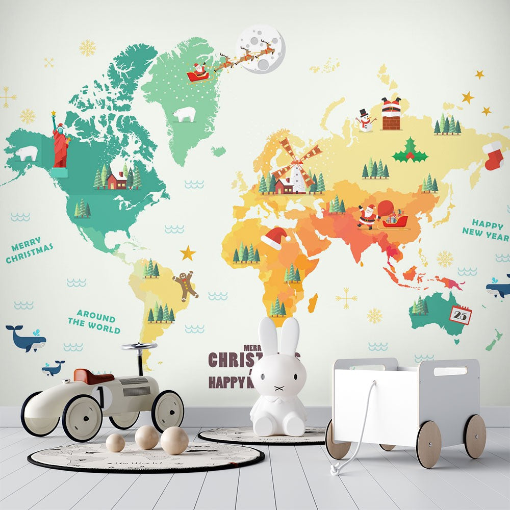 Christmas Santa Map Kids Map Colorful Wallpaper Mural