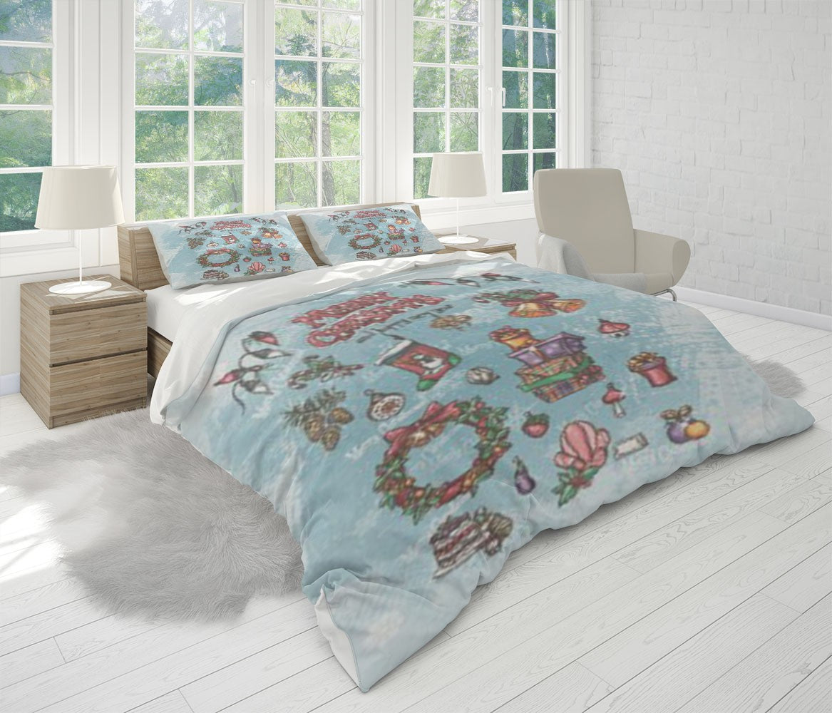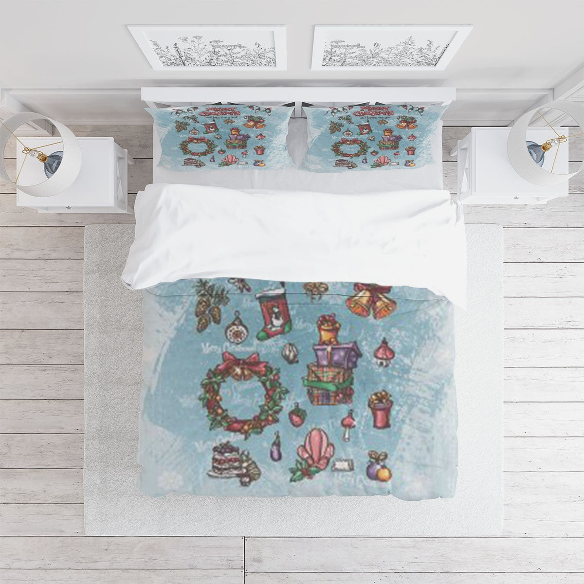 Christmas Socks Gifts Duvet Cover Set W Pillowcases, Colorful Texture Patterns 3D Quilt Cover, 3Pc Single Double Queen King Size Doona Cover