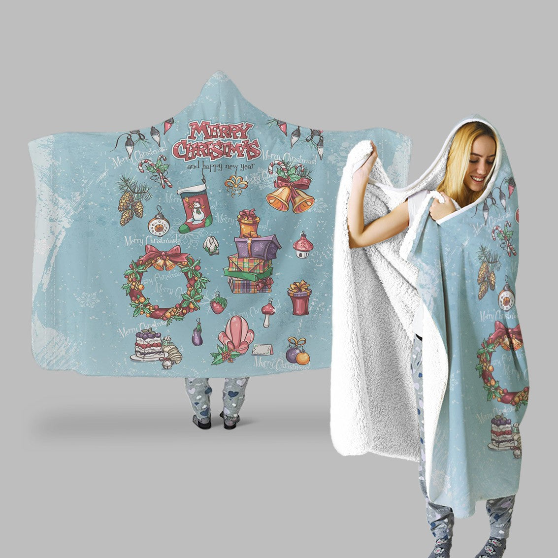 Christmas Socks Gifts Texture Patterns Multicolour Personalized Hooded Throw Blanket Fleece Hoodie Cape
