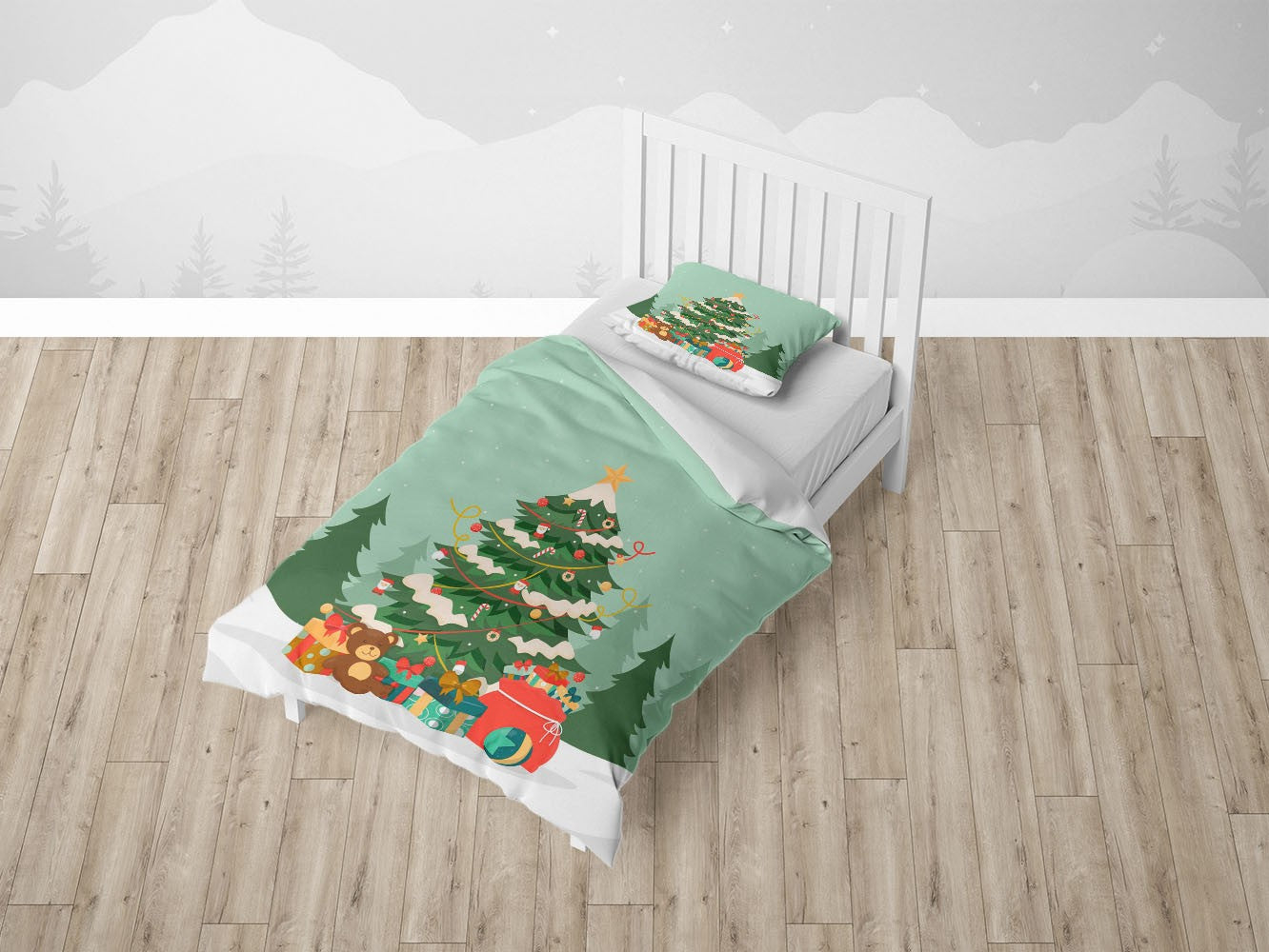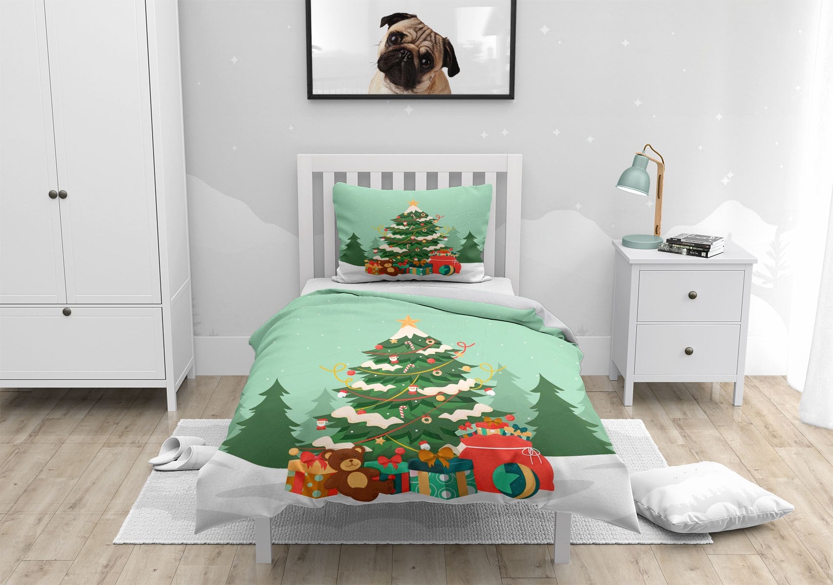 Christmas Tree Gift Duvet Cover Set w Pillowcases, Green Kids Cartoon 3D Quilt Cover, 3pc Single Double Queen King Size Doona Cover