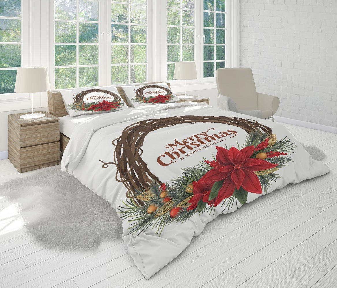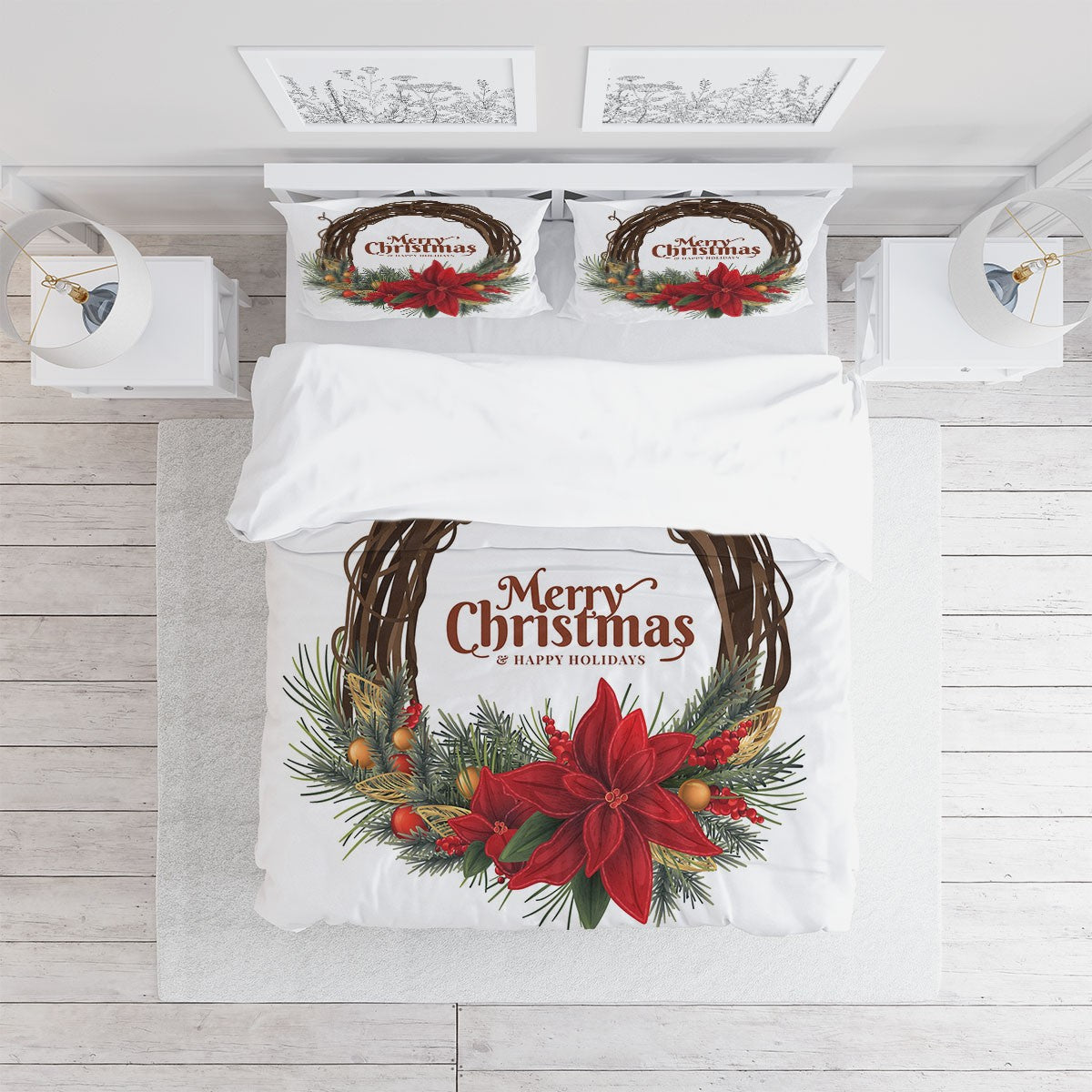 Christmas Wreath Duvet Cover Set W Pillowcases, White Floral Patterns 3D Quilt Cover, 3Pc Single Double Queen King Size Doona Cover