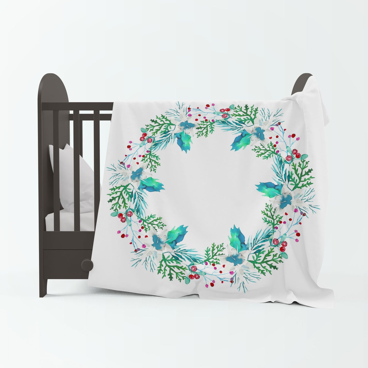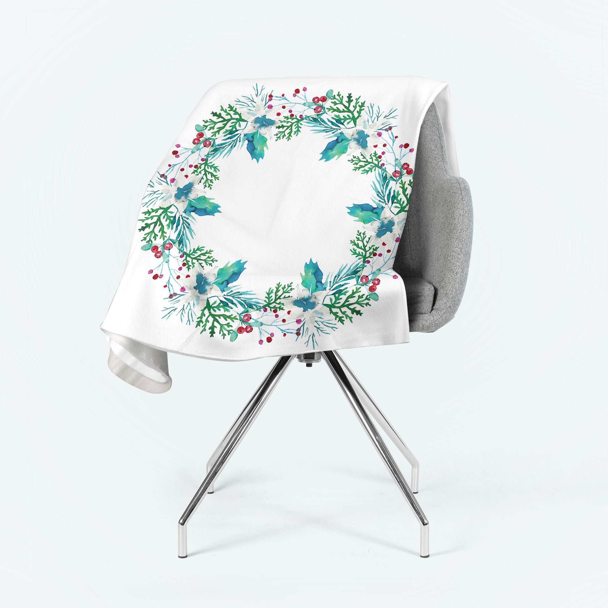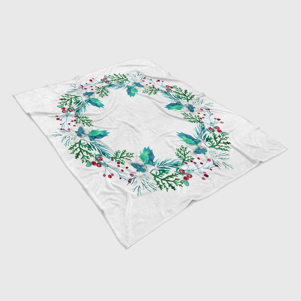 Christmas Wreath Floral Patterns White Personalized Throw Blanket Custom Fleece Sherpa Throw