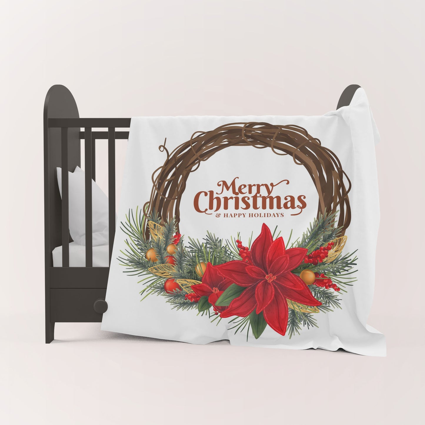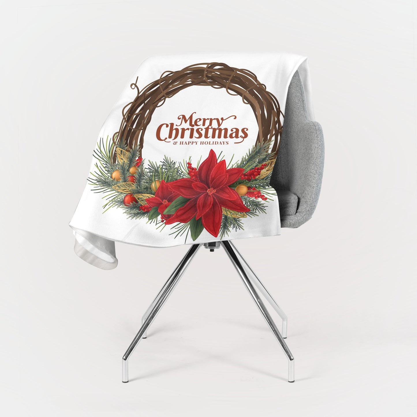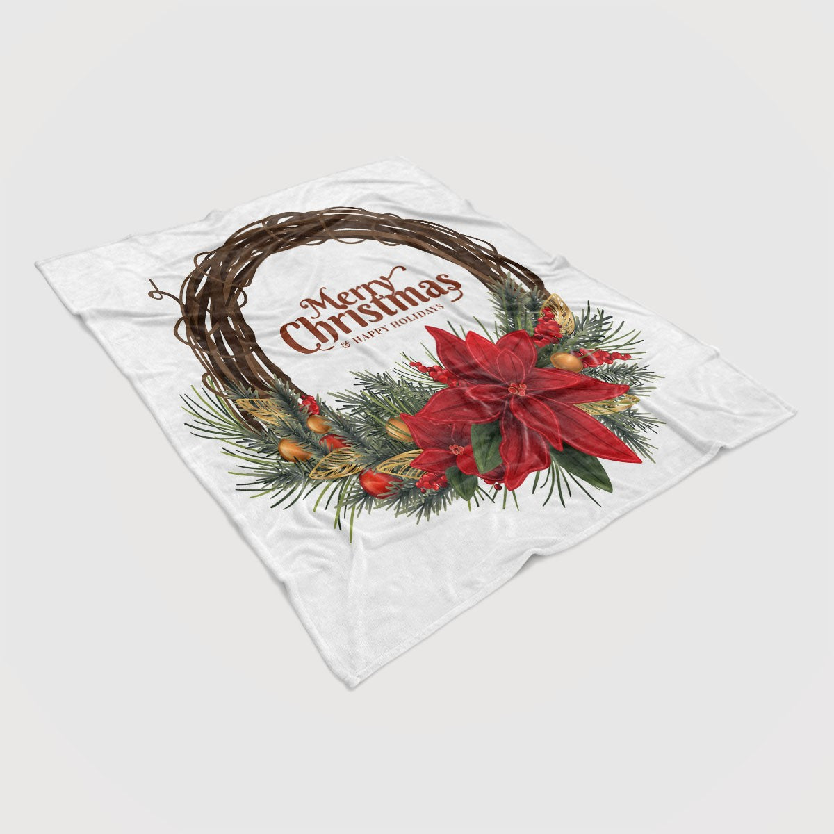 Christmas Wreath Floral Patterns White Personalized Throw Blanket Custom Fleece Sherpa Throw
