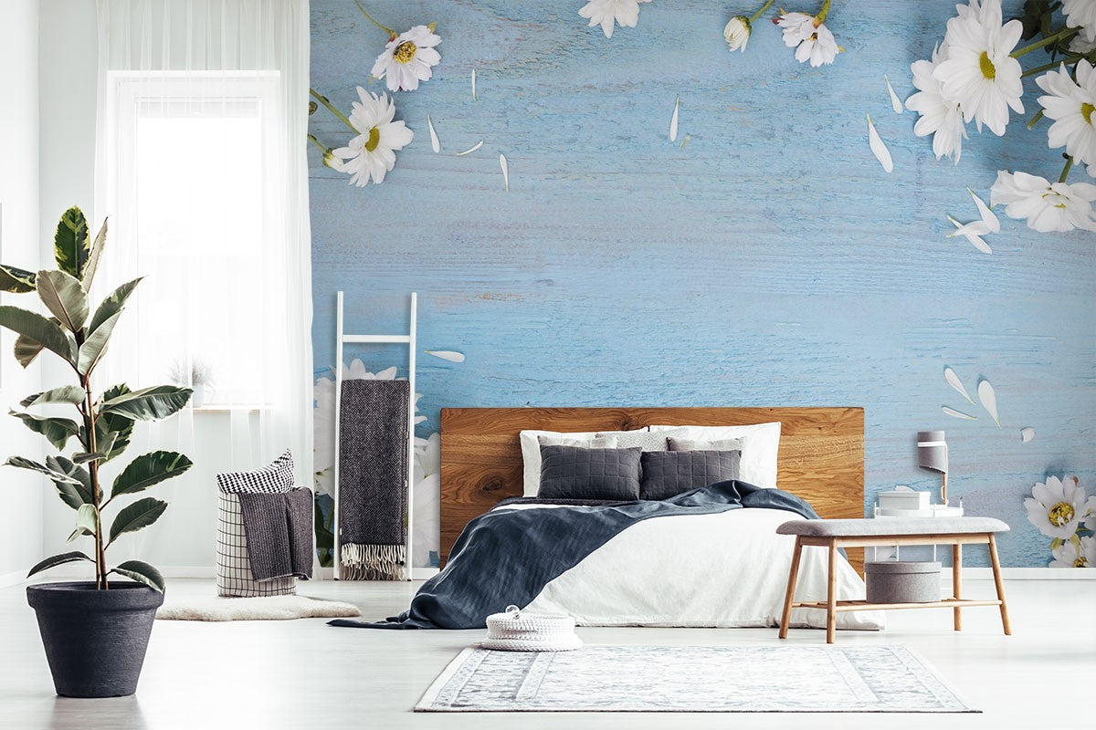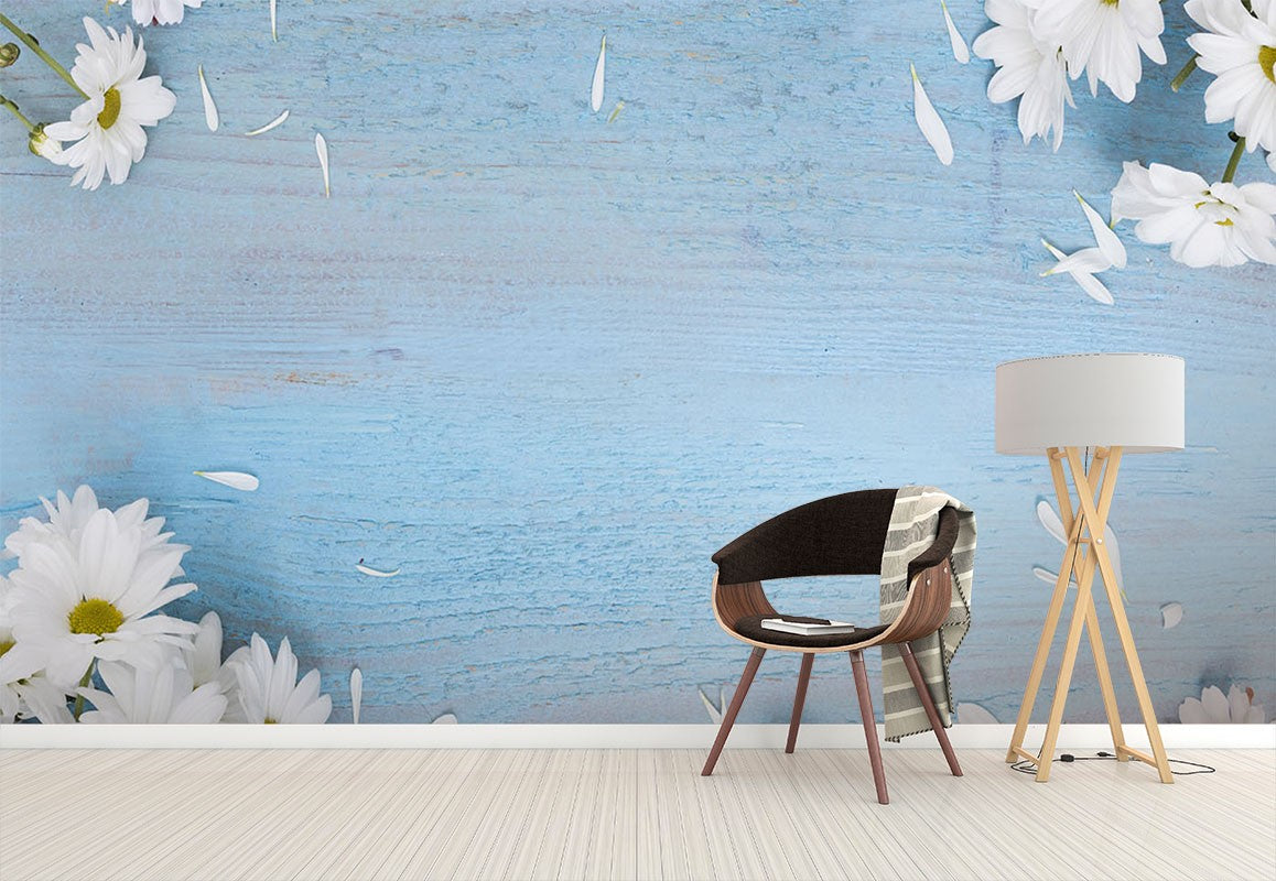Chrysanthemum Petals Dutch Flowers Blue Wallpaper Mural,Self-Adhesive Peel And Stick 3D Wall Paper,Removable Bedroom Wall Decor
