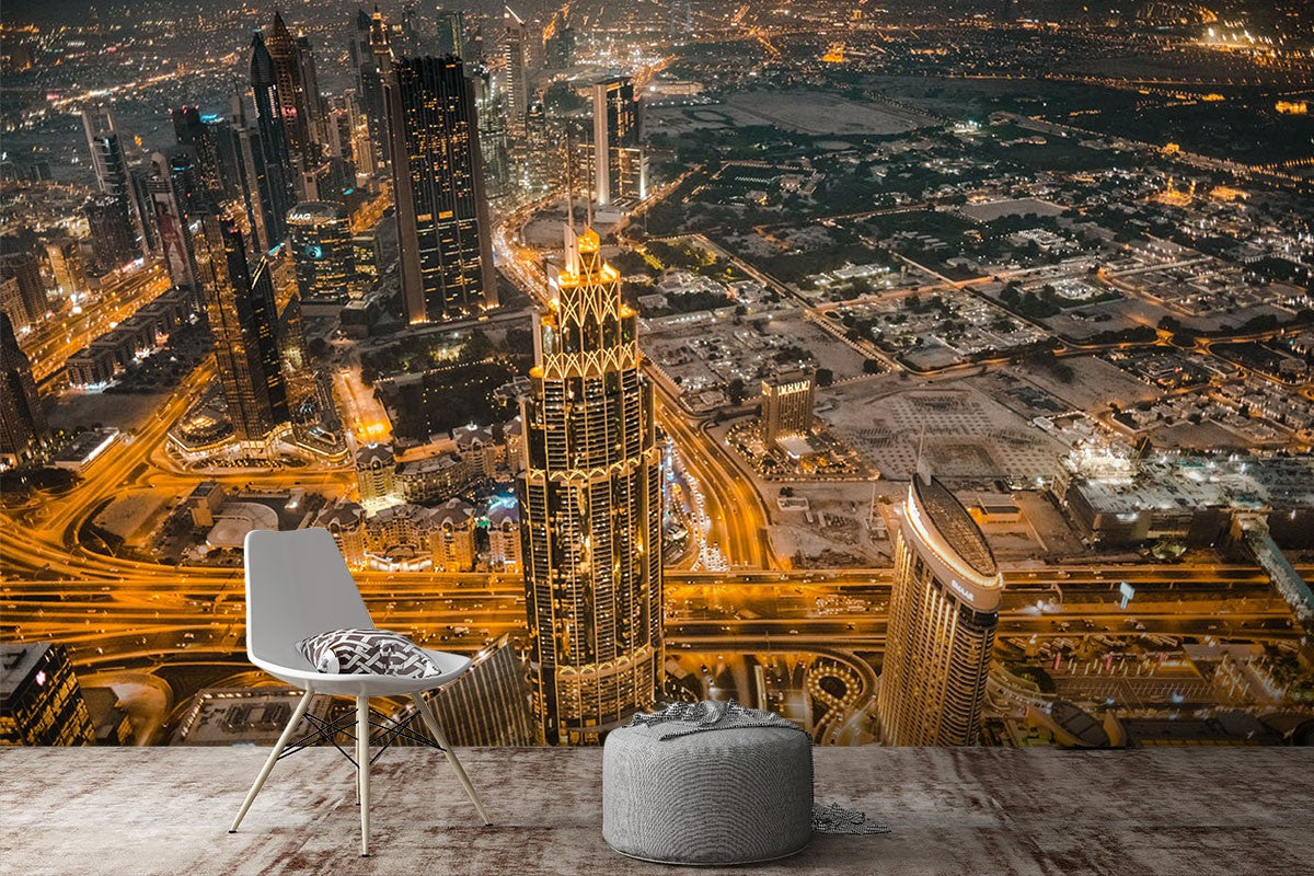 City Lights Architecture Orange Wallpaper Mural,Self-Adhesive Peel And Stick 3D Wall Art,Removable Bedroom Wall Decor