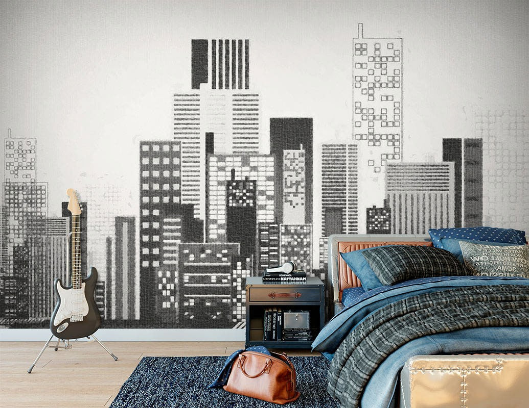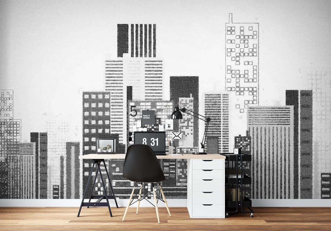 City Skyscrapers Architecture Black&White Wallpaper Mural,Self-Adhesive Peel And Stick 3D Wall Paper,Bedroom Removable Wall Decor