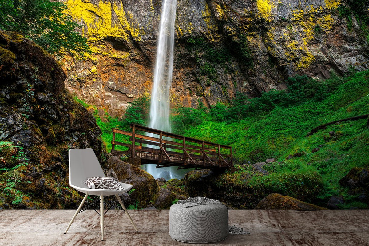 Cliff Nature Waterfall Brown Wallpaper Mural,Self-Adhesive Peel And Stick 3D Wall Art,Bedroom Australian Company Wall Decor