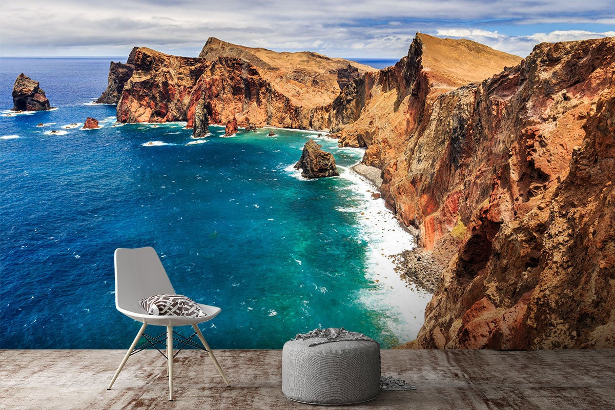 Cliff Rocks Beach Green Wallpaper Mural,Self-Adhesive Peel And Stick 3D Wall Decor,Removable Bedroom Wall Decor