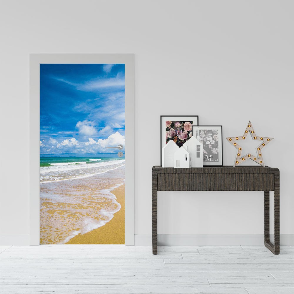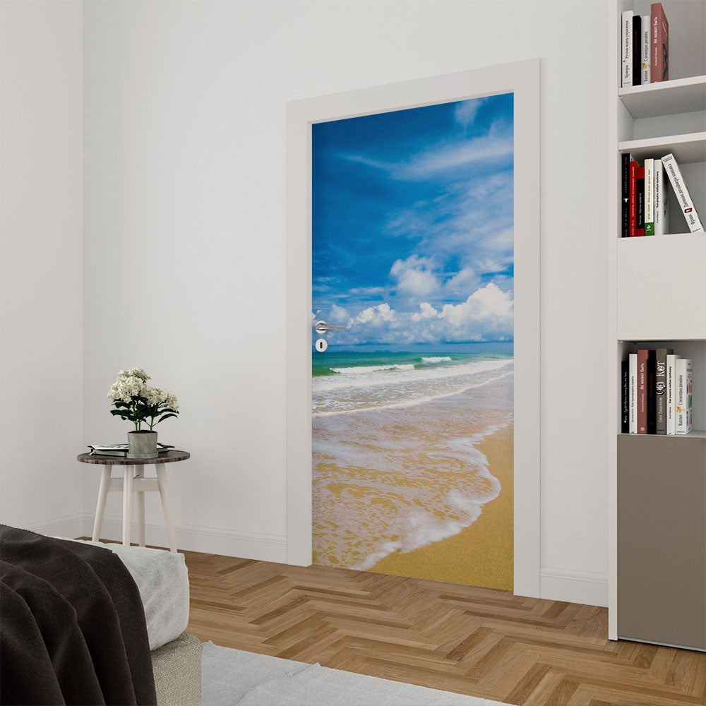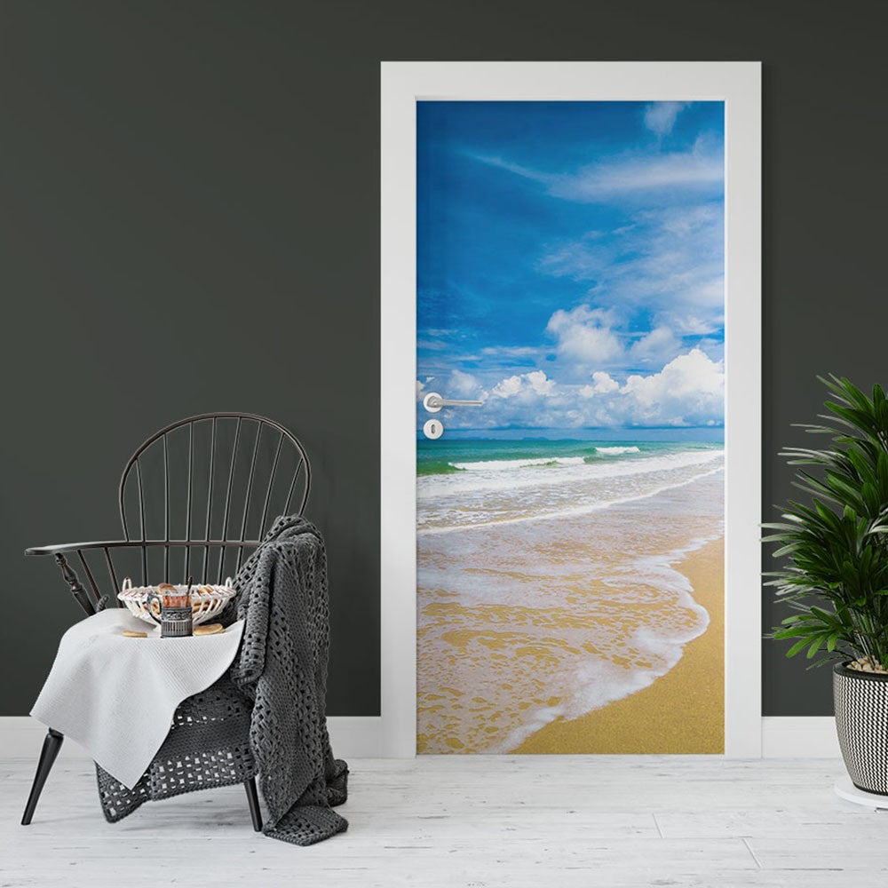 Cloud Sky Sand Beach Wave Door Wrap, Customized Mural For Door, Door Mural Sticker, Peel And Stick Door Cover, Removable Door Decal