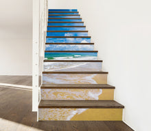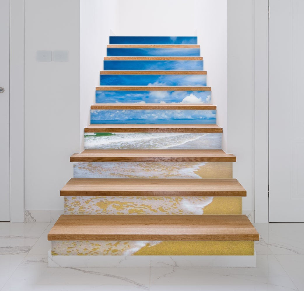Cloud Sky Sand Beach Wave Blue Stair Riser Decals, Waterproof Removable Staircase Decals, Vinyl Peel And Stick Stairs Decal Stickers