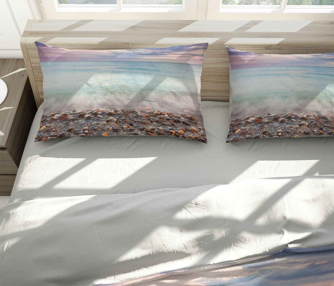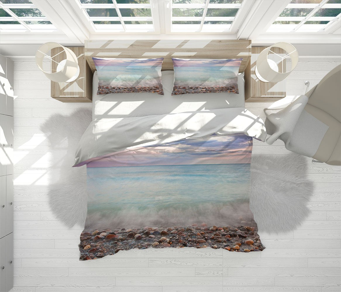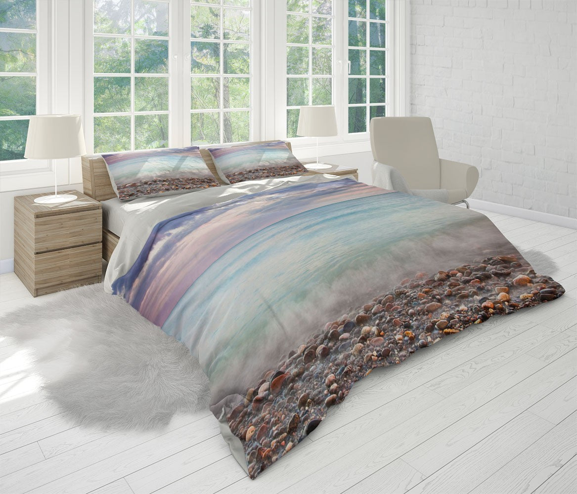 Cloud Stone Duvet Cover Set W Pillow Cover, Green Beach Seas & Oceans 3D Quilt Cover, Single Double Queen King Size Doona Cover